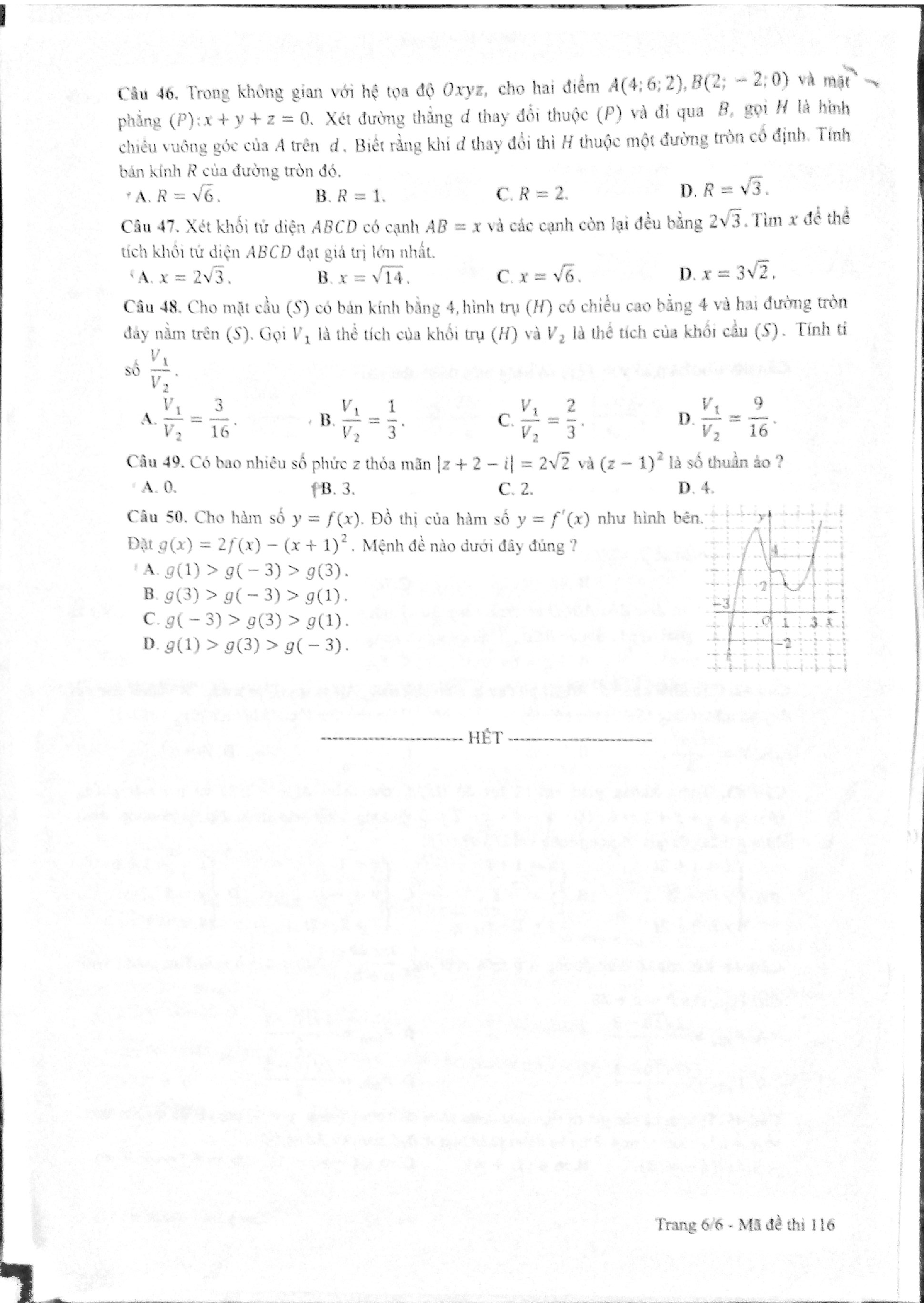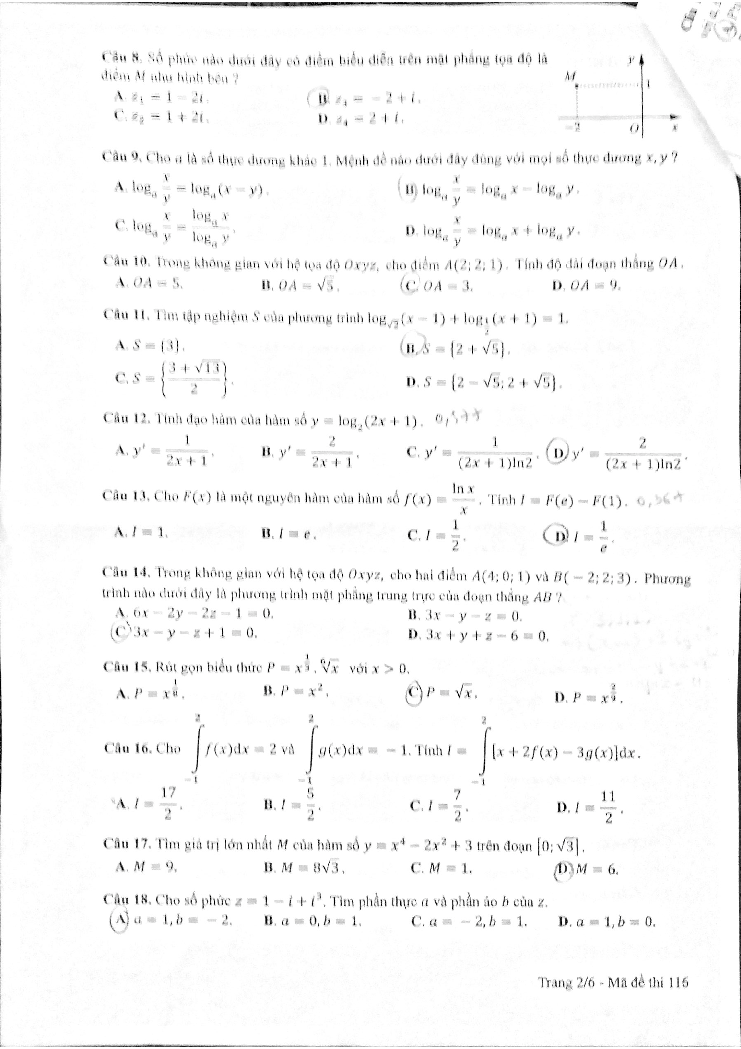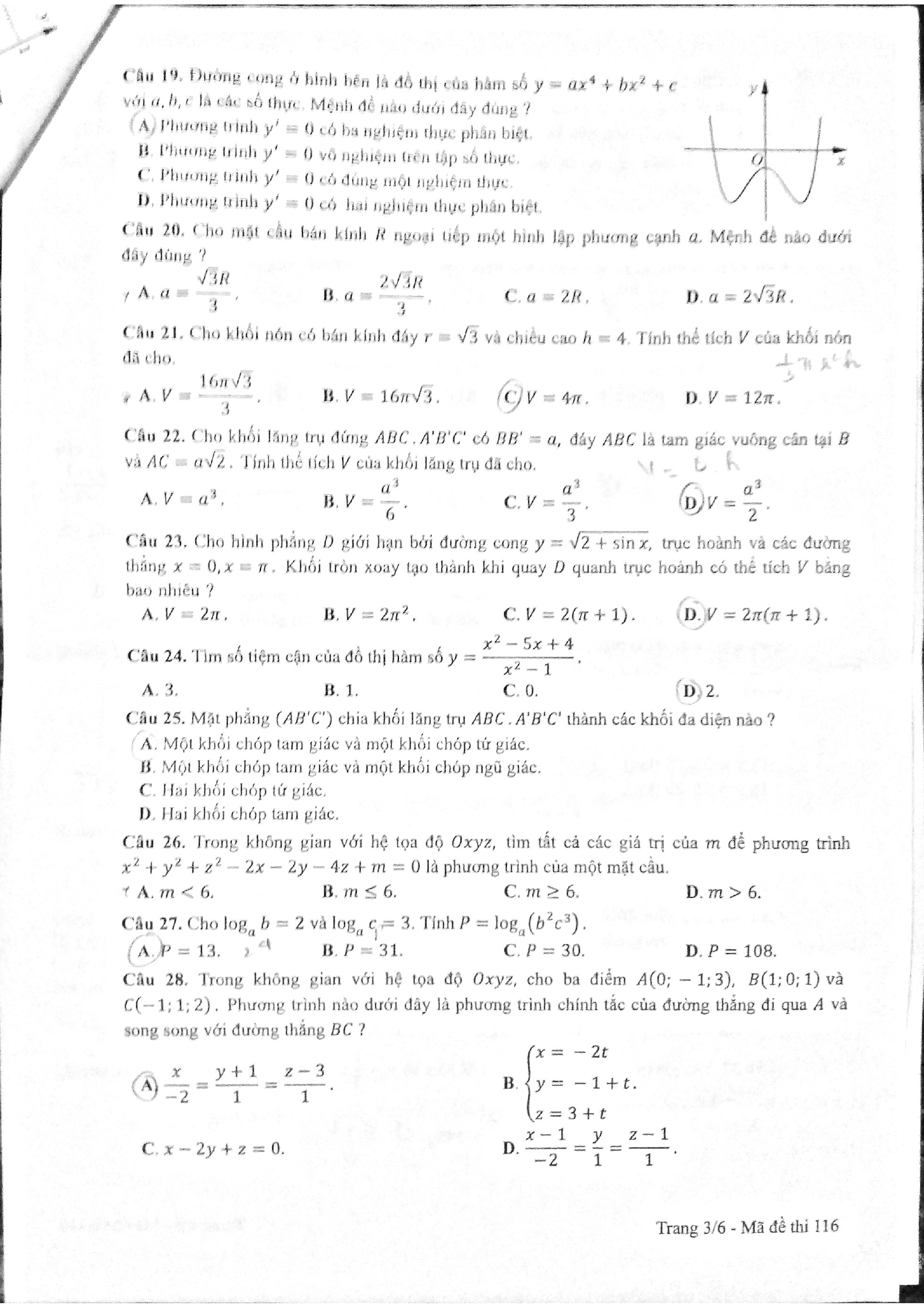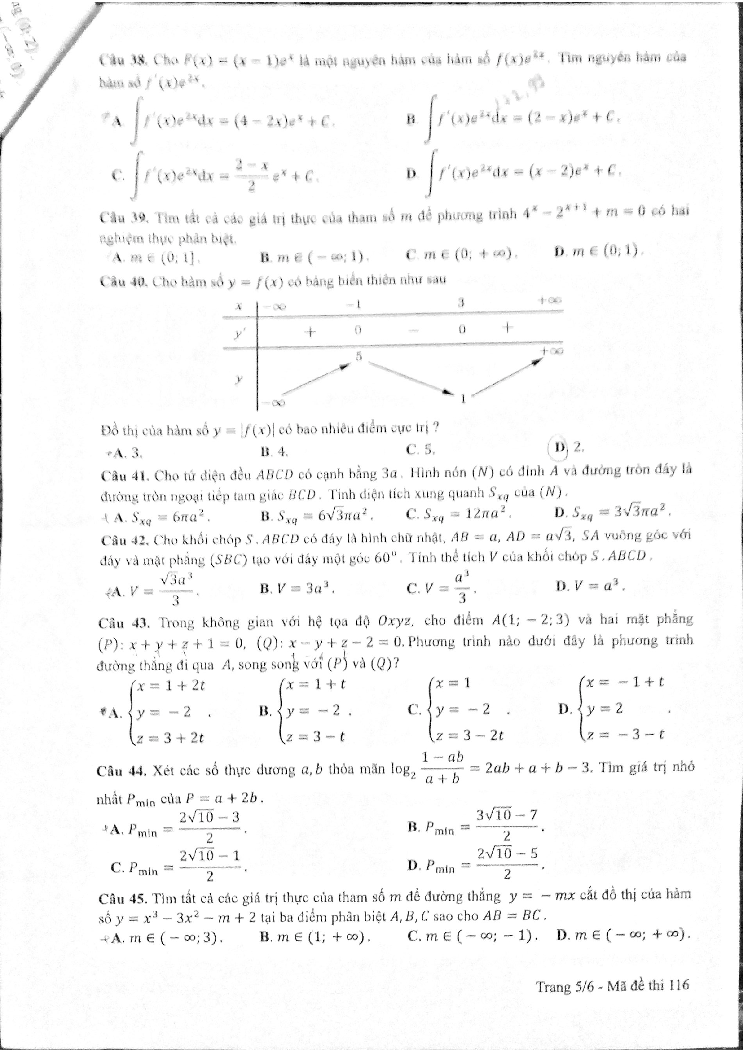 Đề thi THPT quốc gia môn Toán năm 2017 - mã đề 116