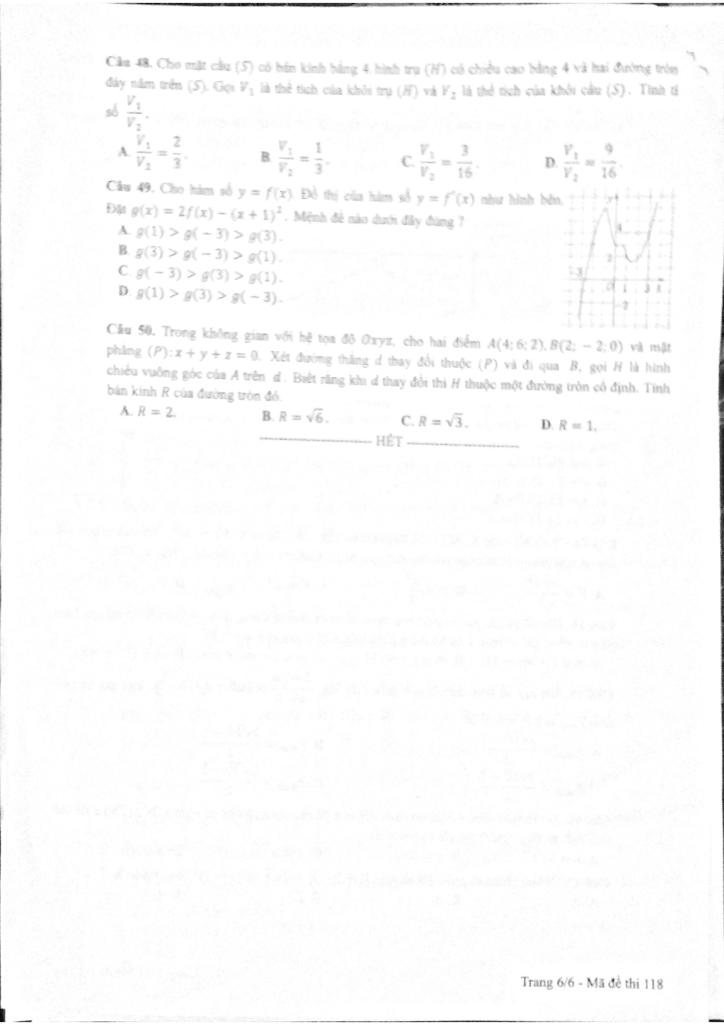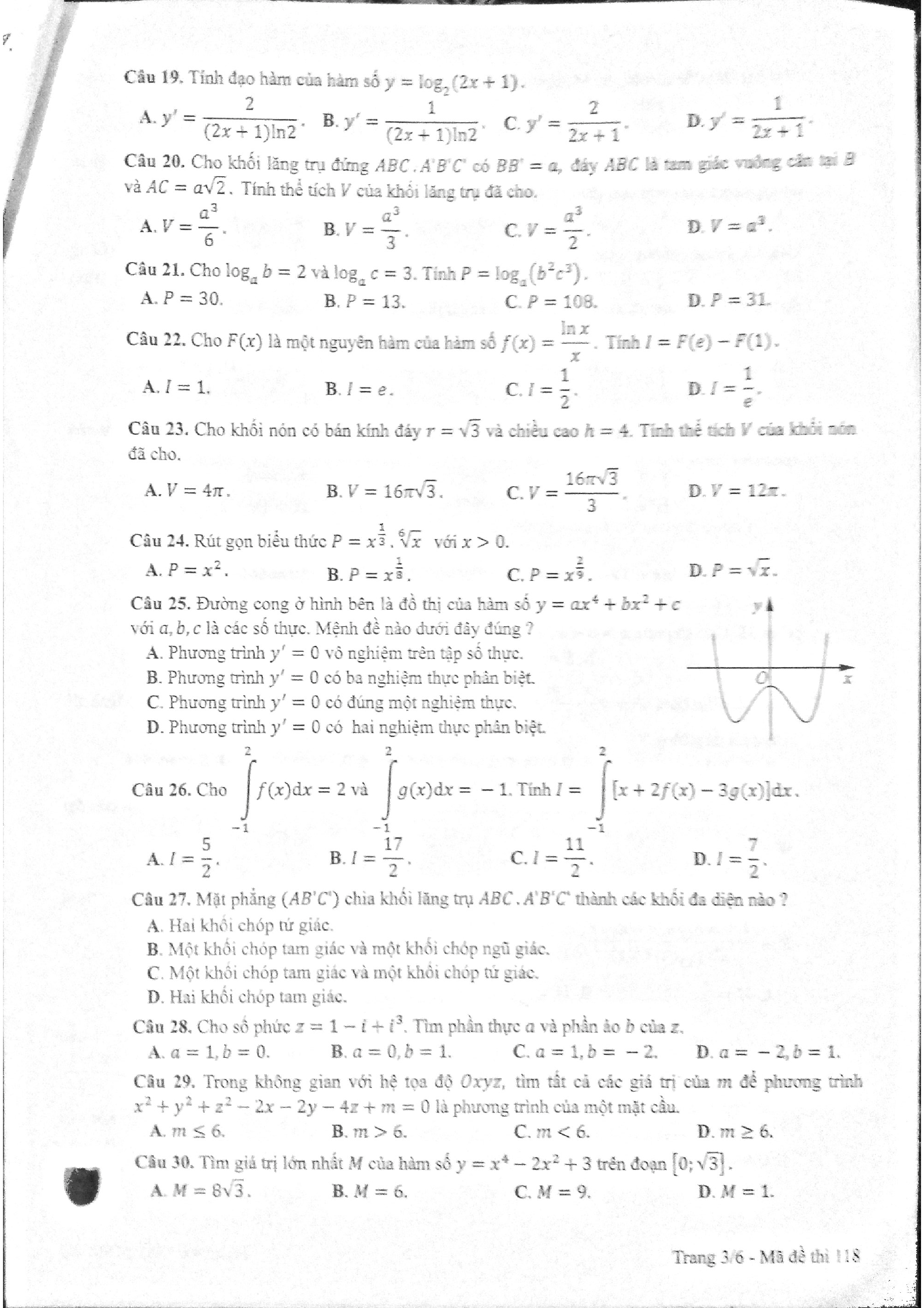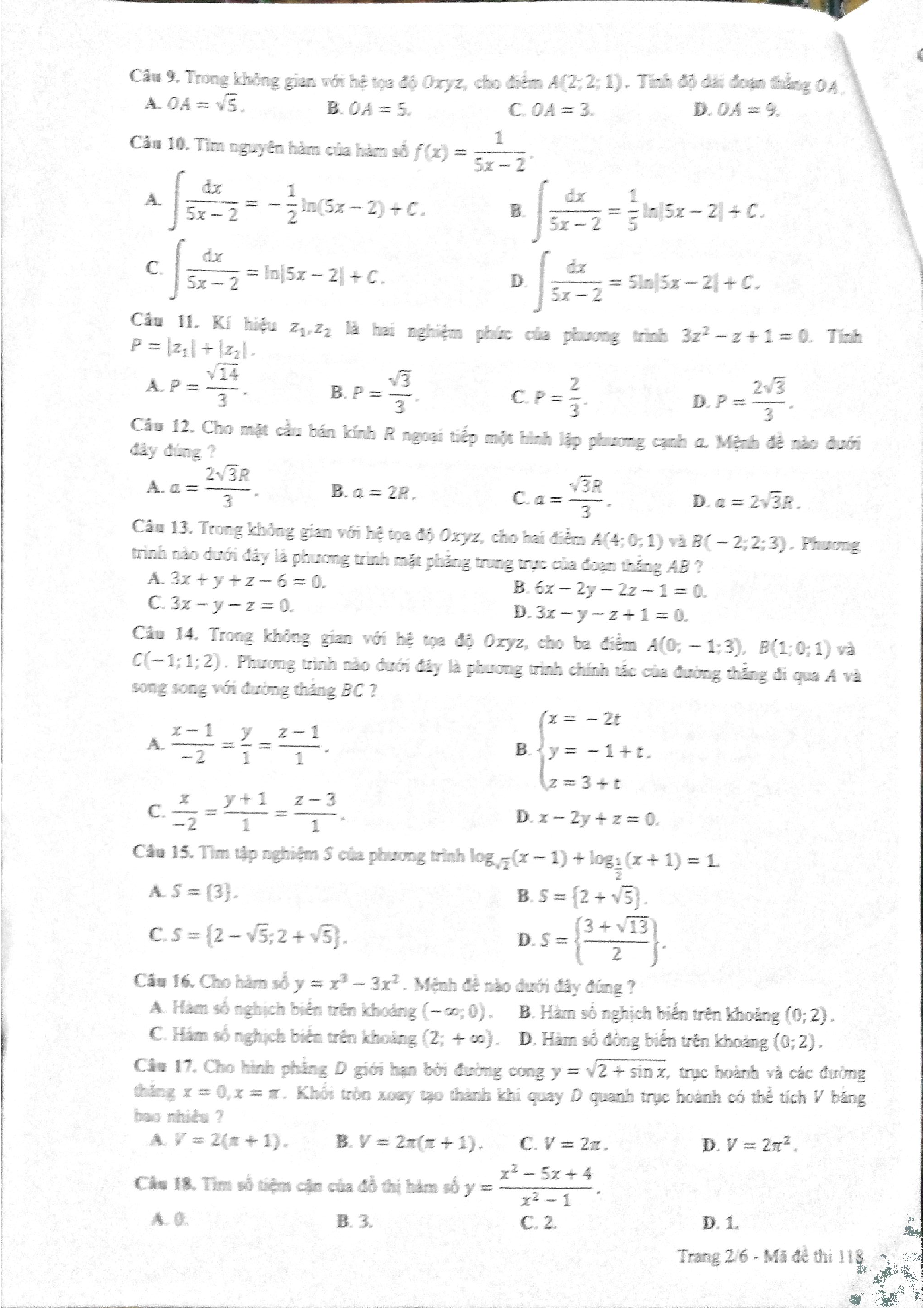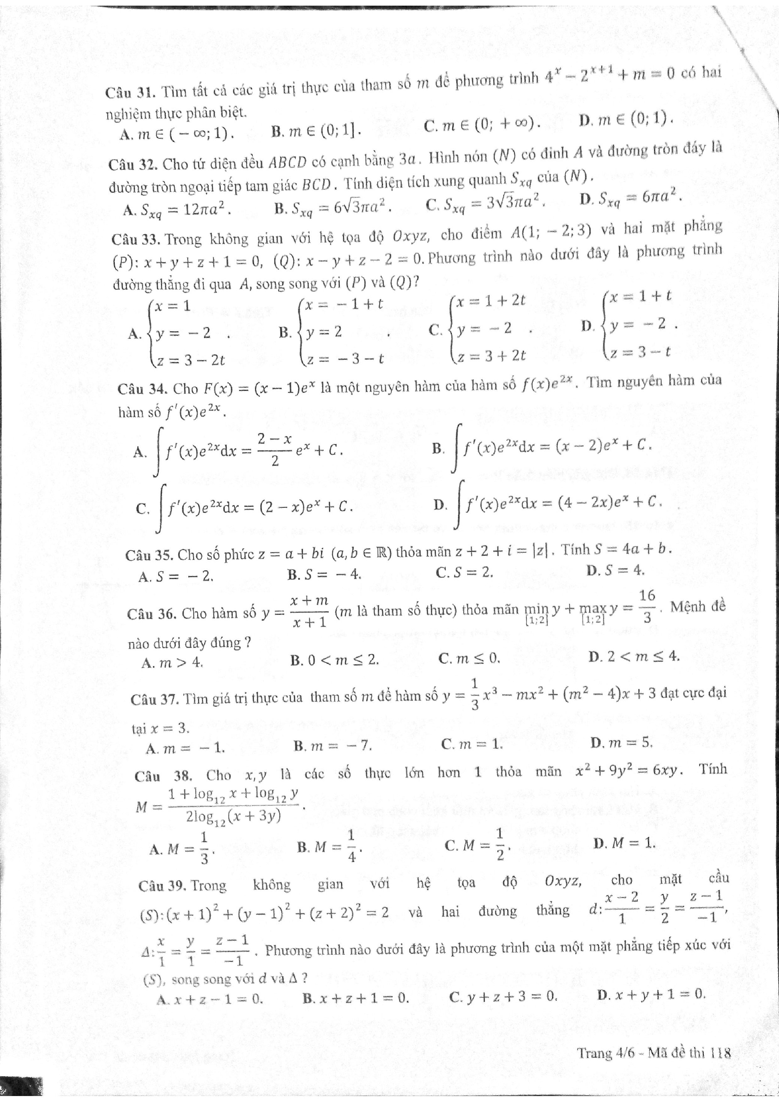 Đề thi THPT quốc gia môn Toán năm 2017 - mã đề 118