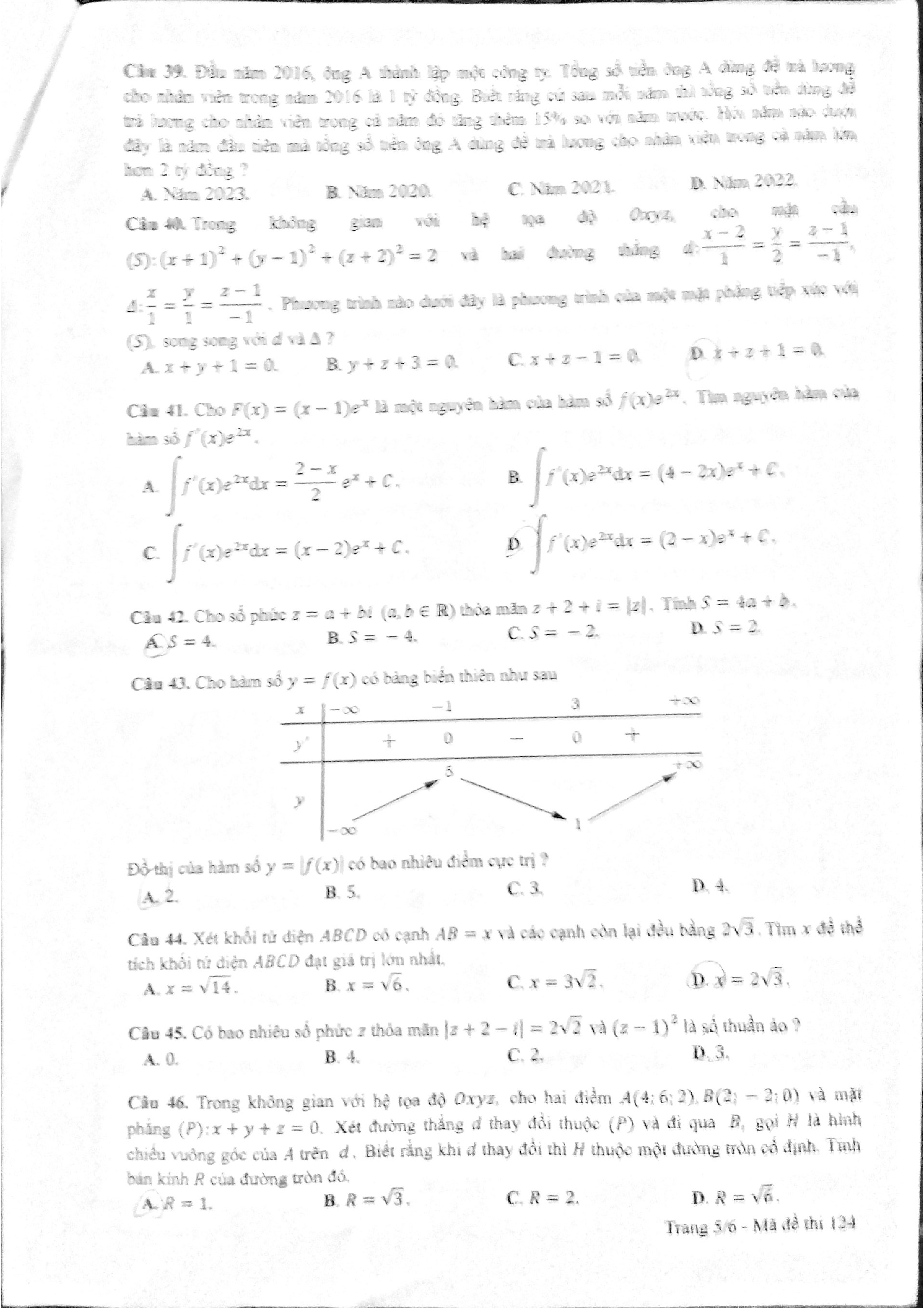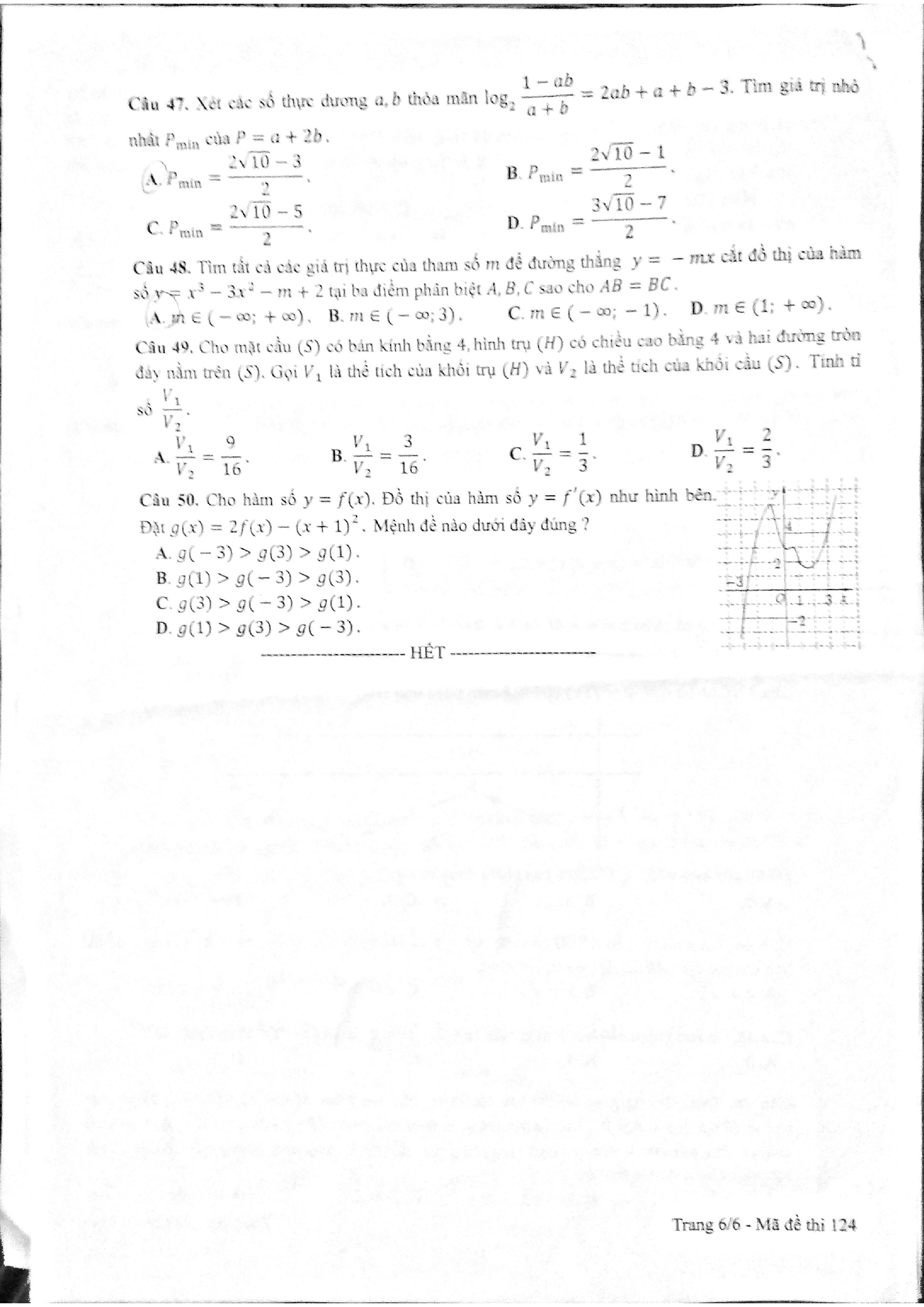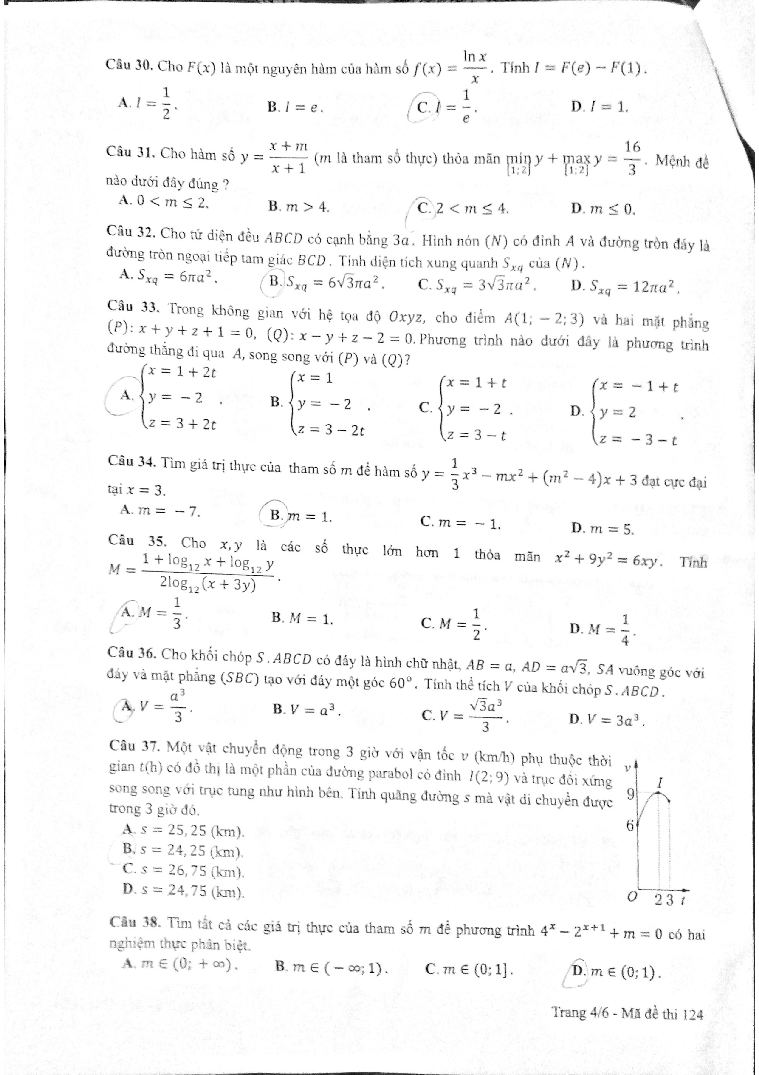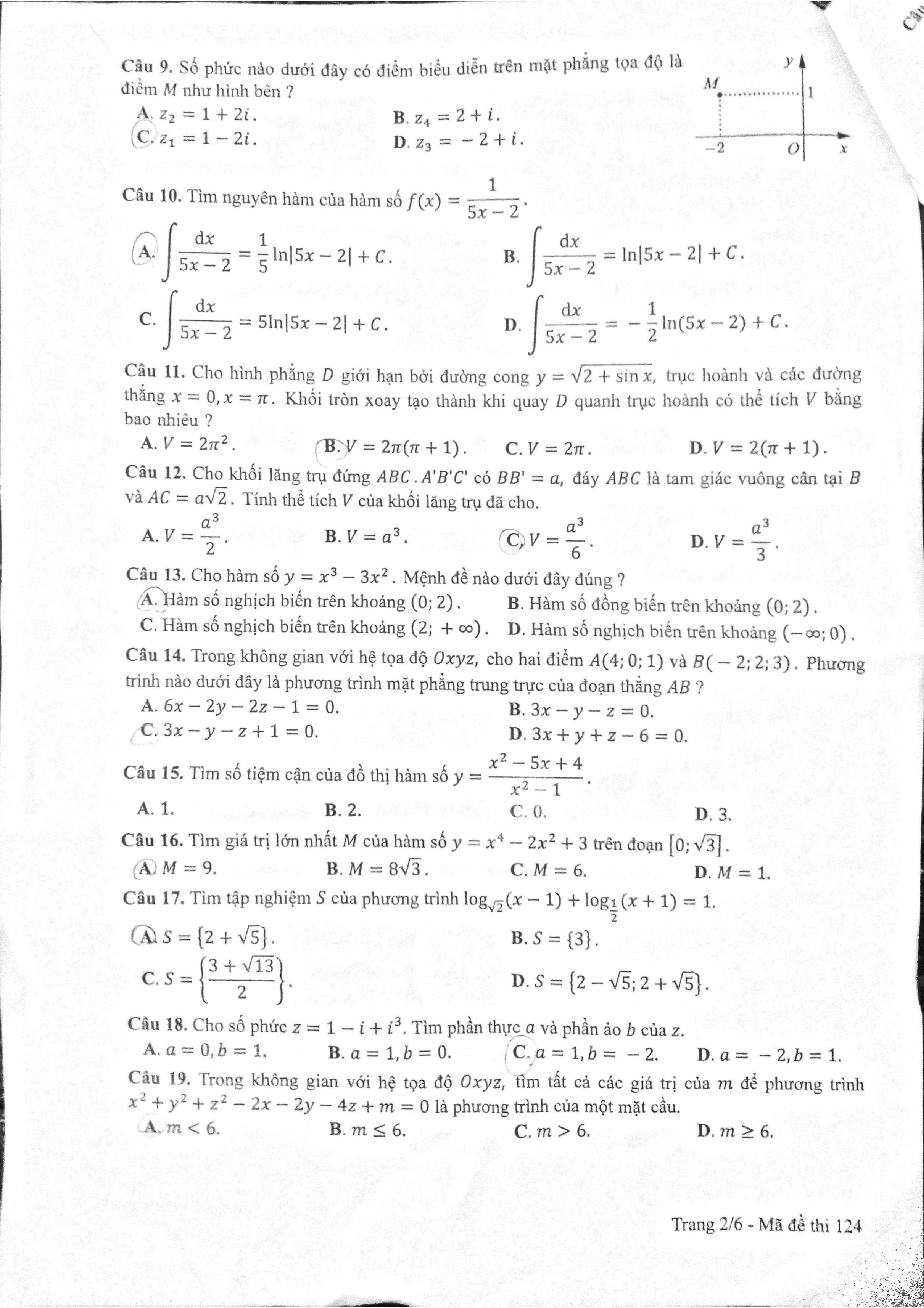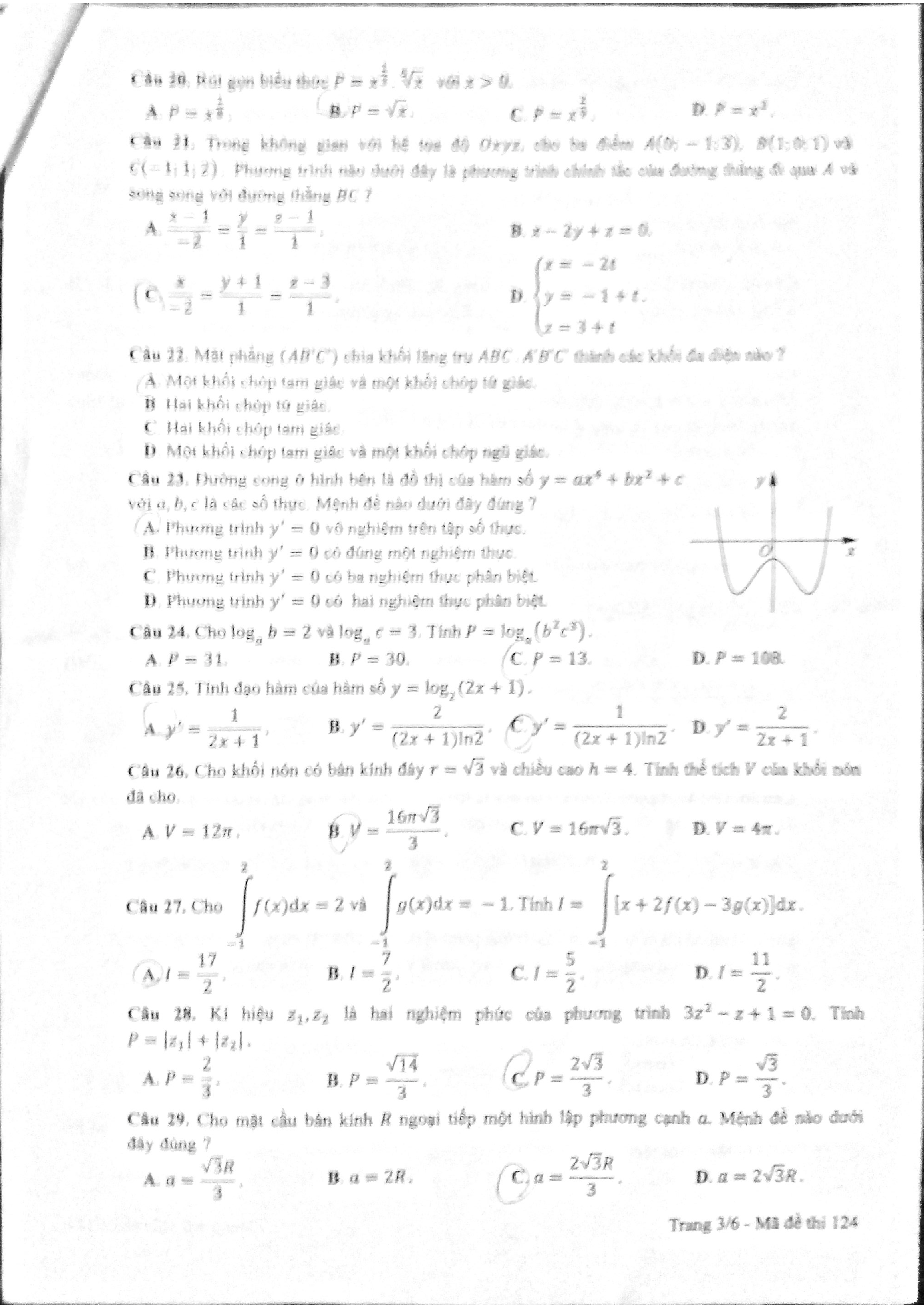 Đề thi THPT quốc gia môn Toán năm 2017 - mã đề 124