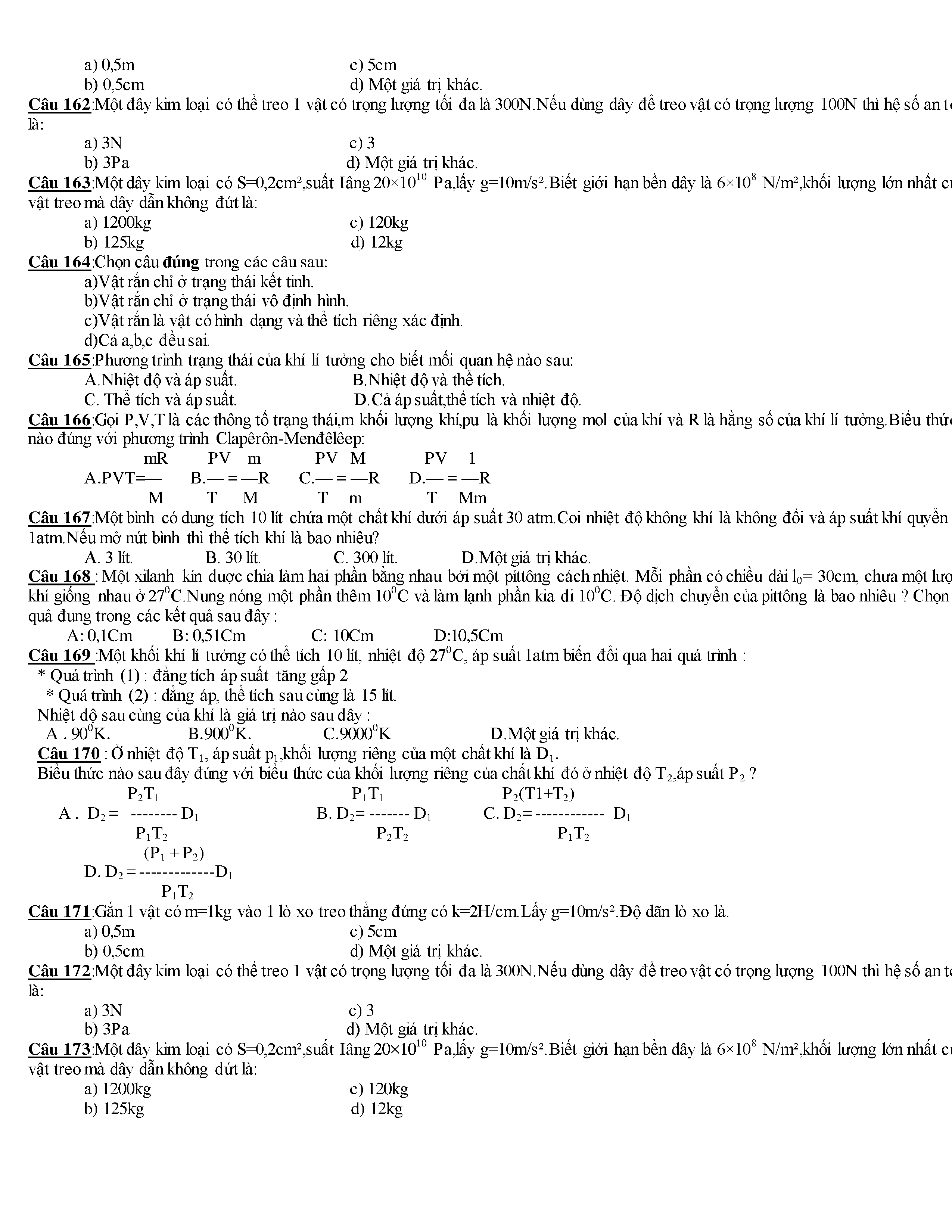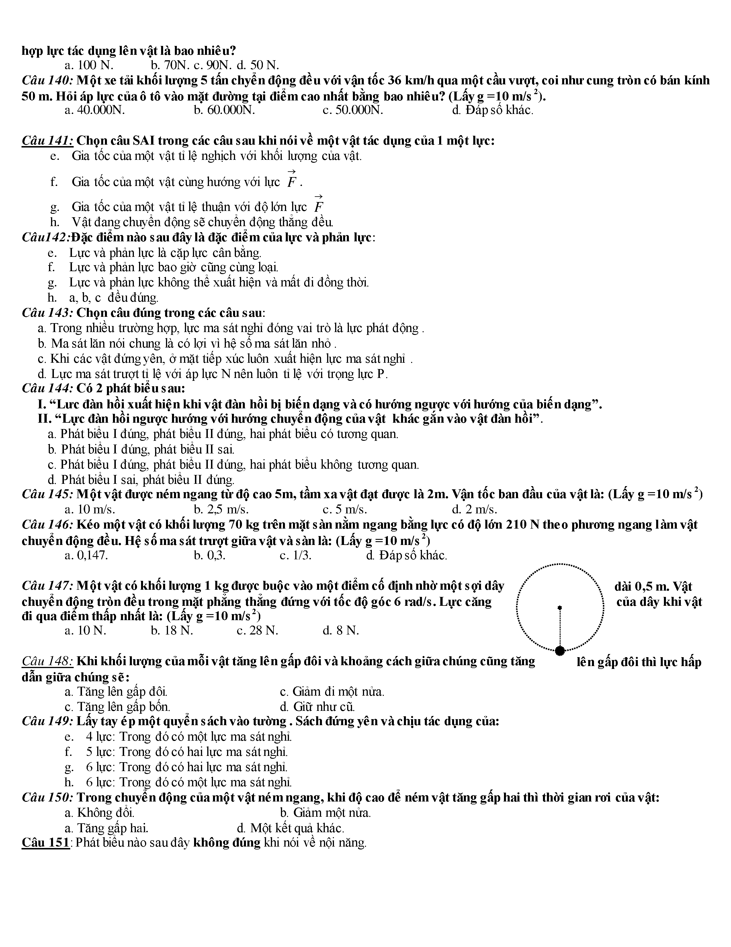 Tuyển tập các câu hỏi vật lí 10