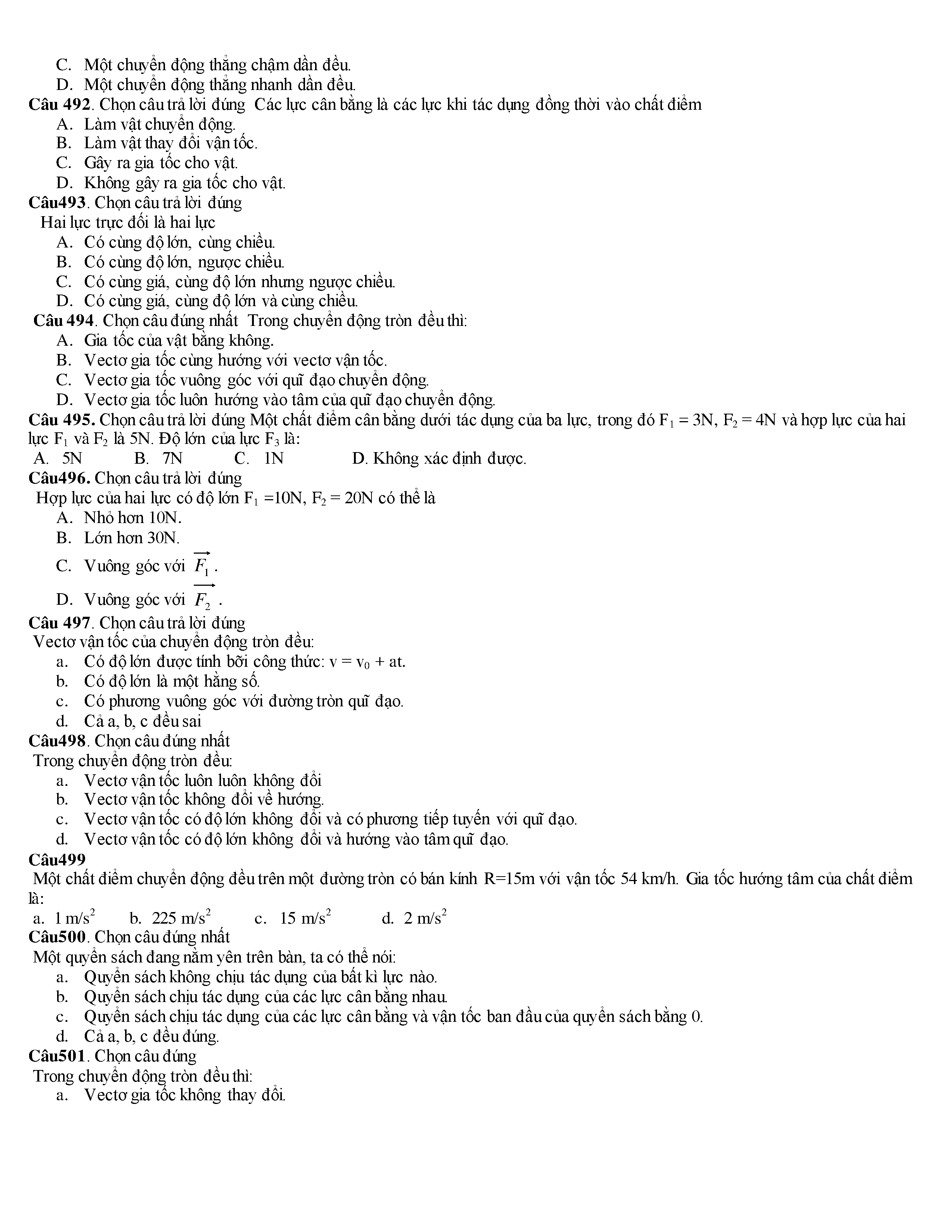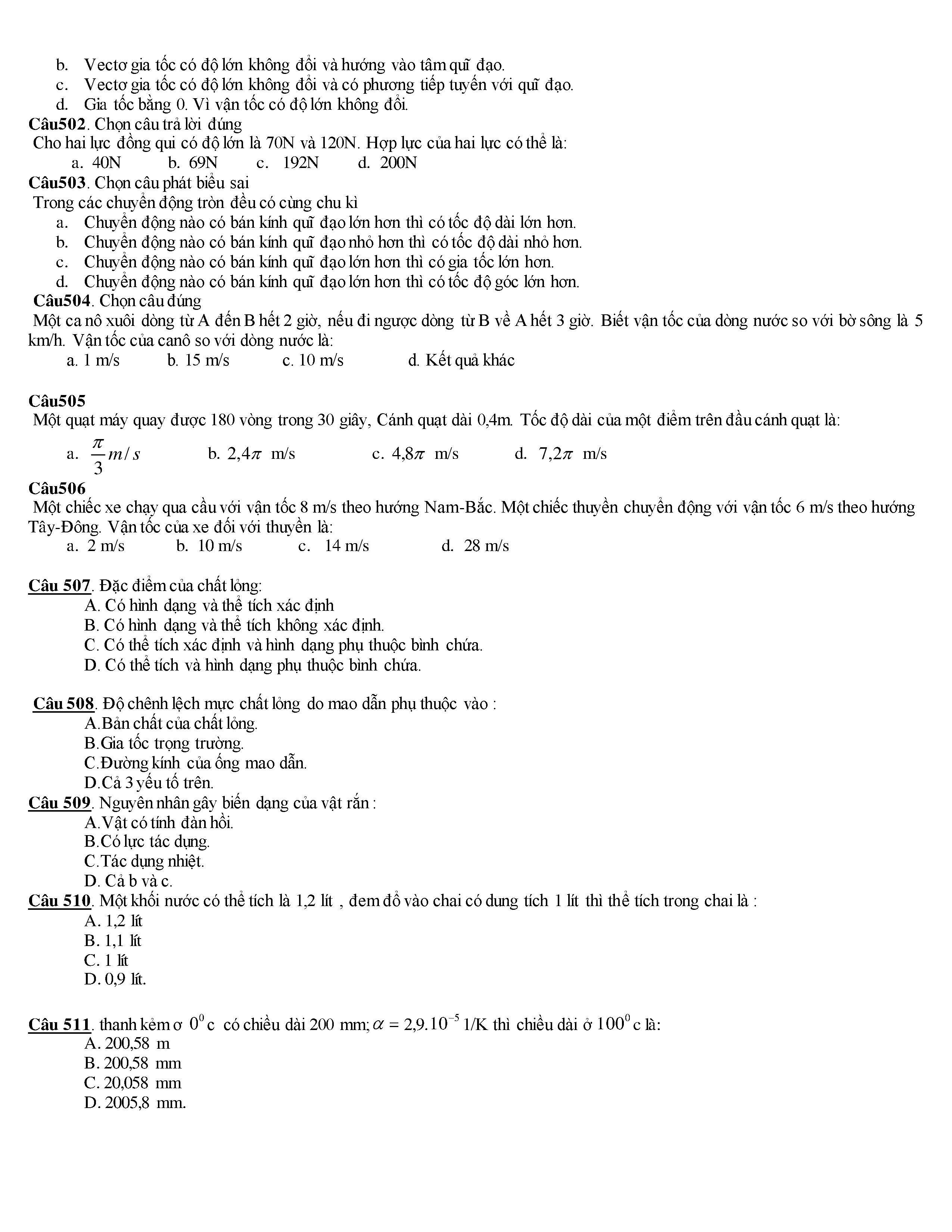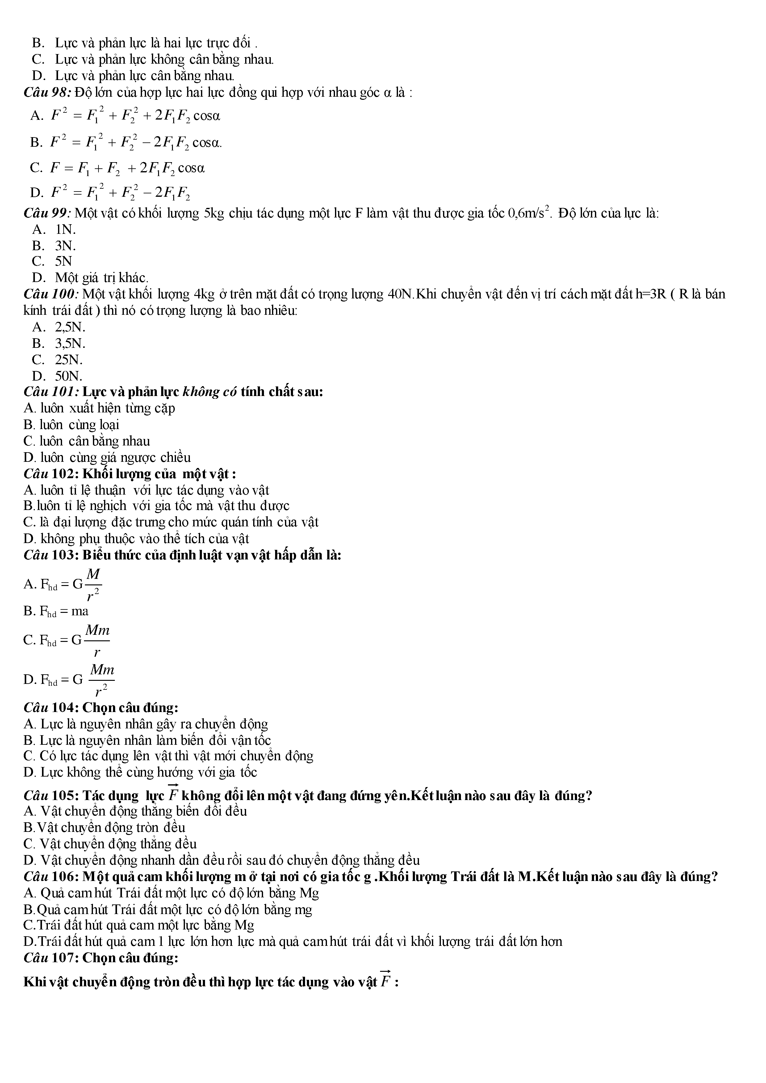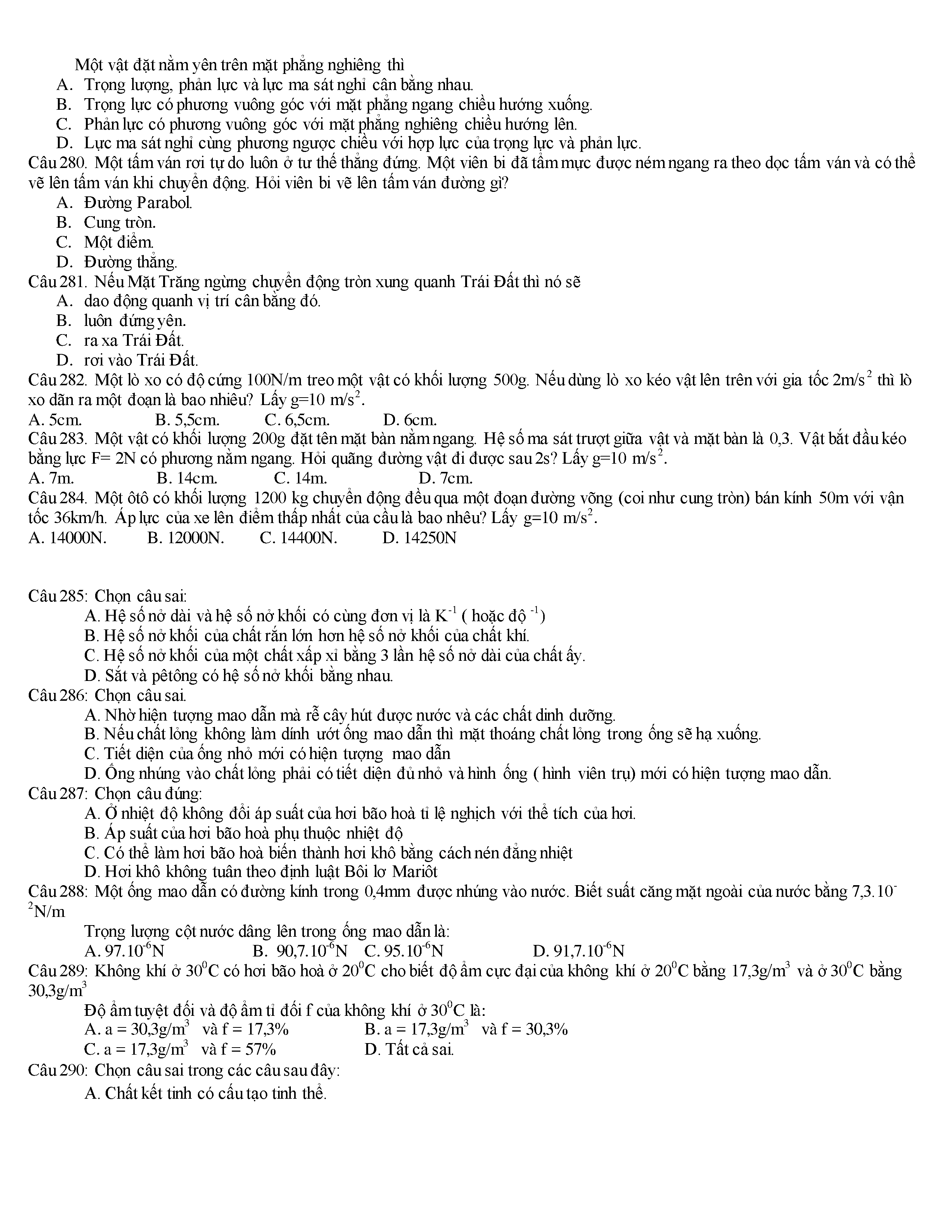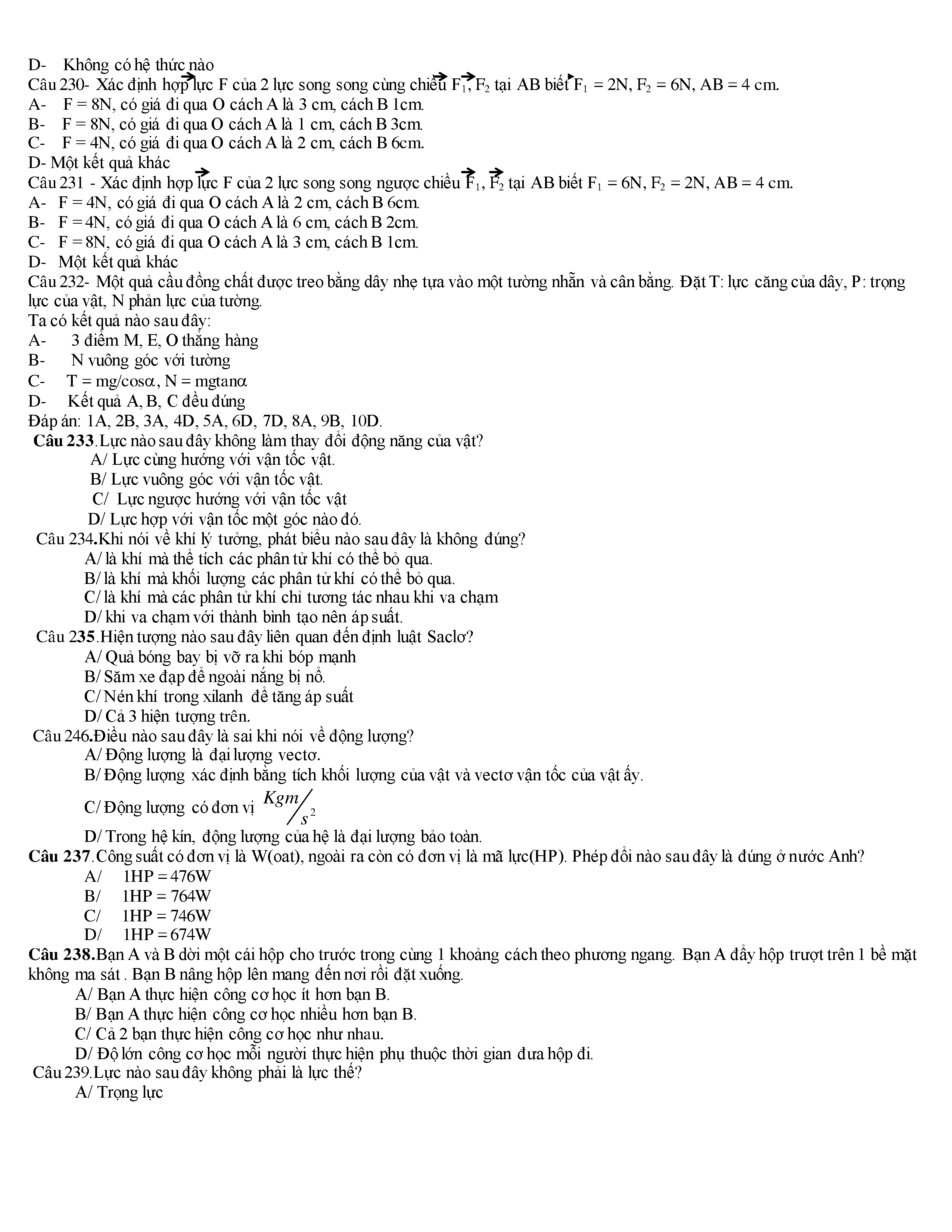 Tuyển tập các câu hỏi vật lí 10