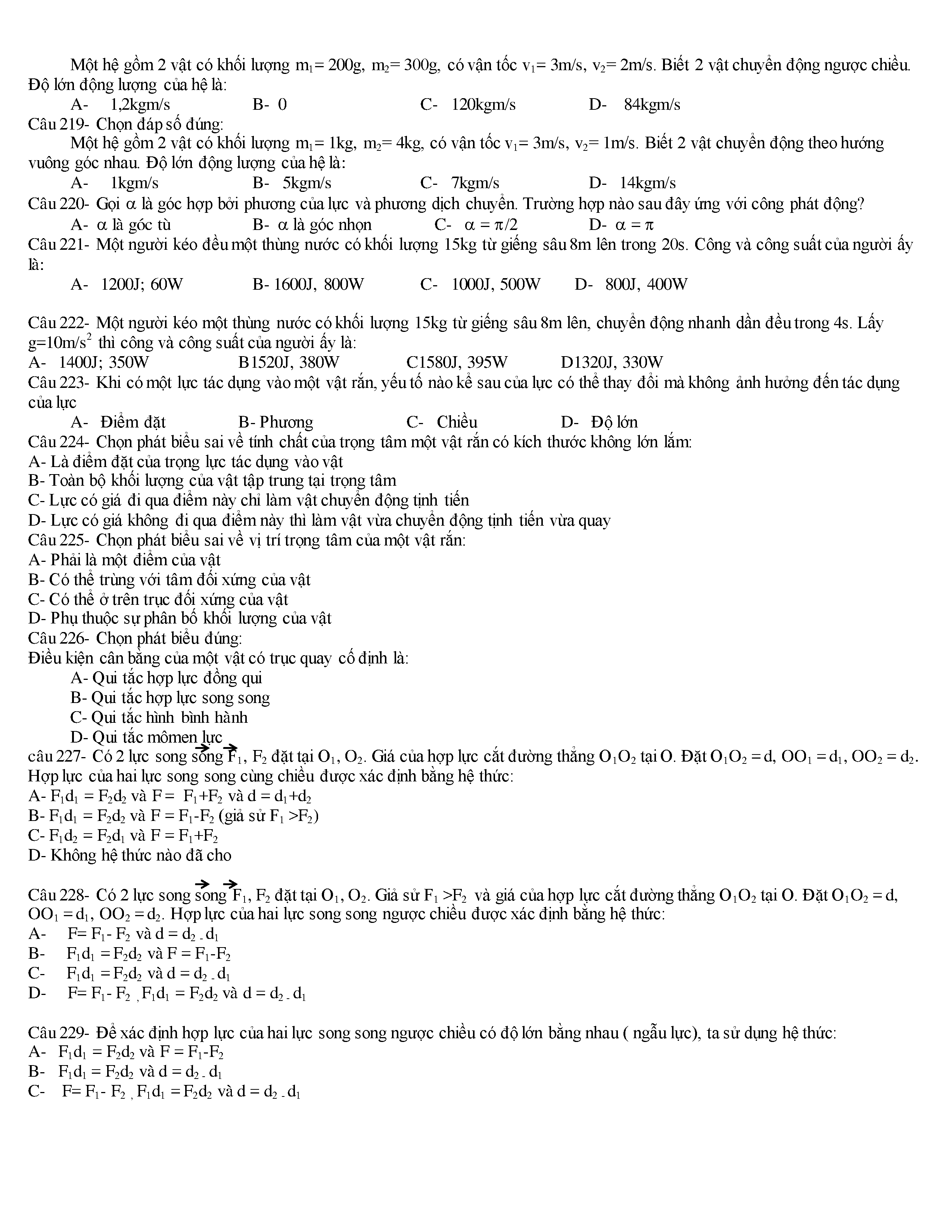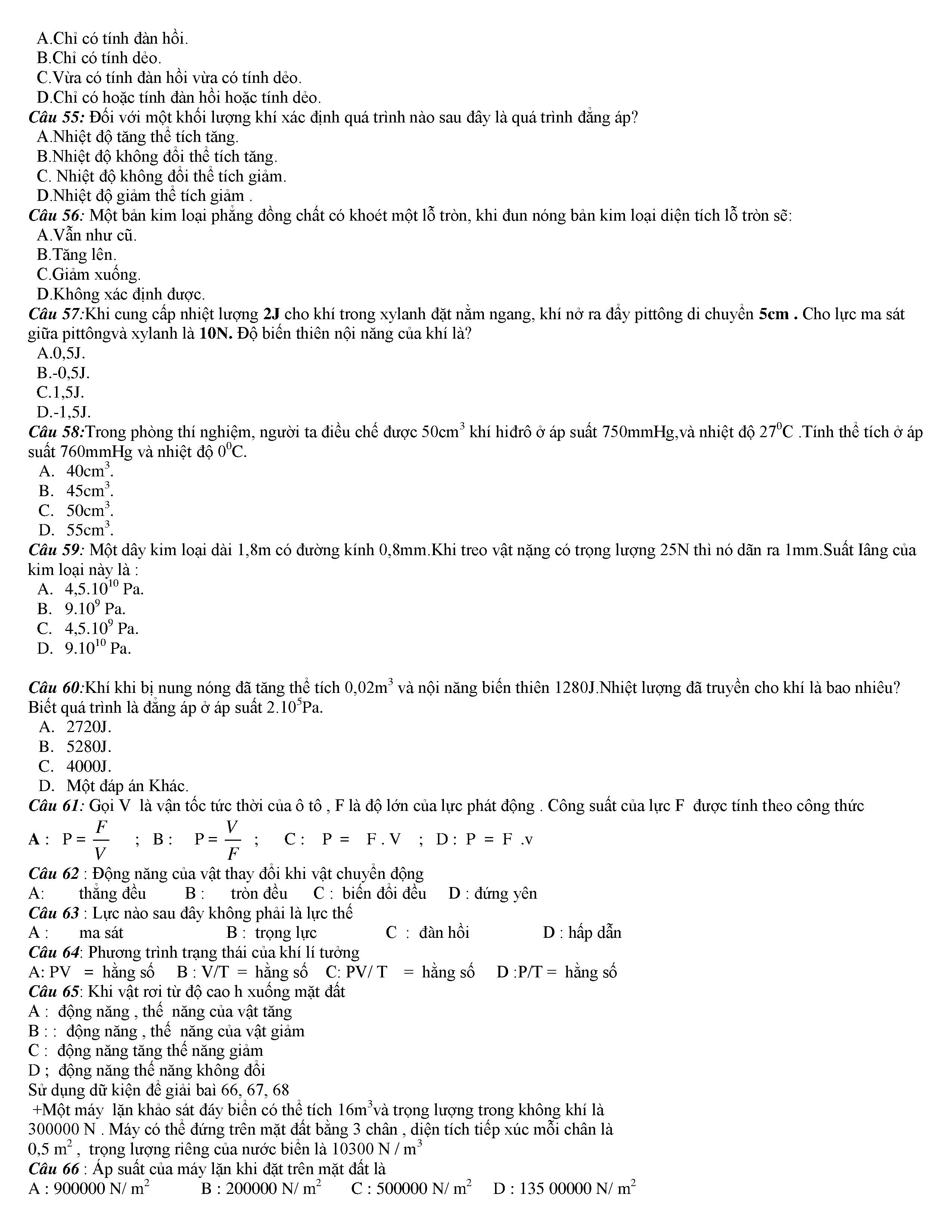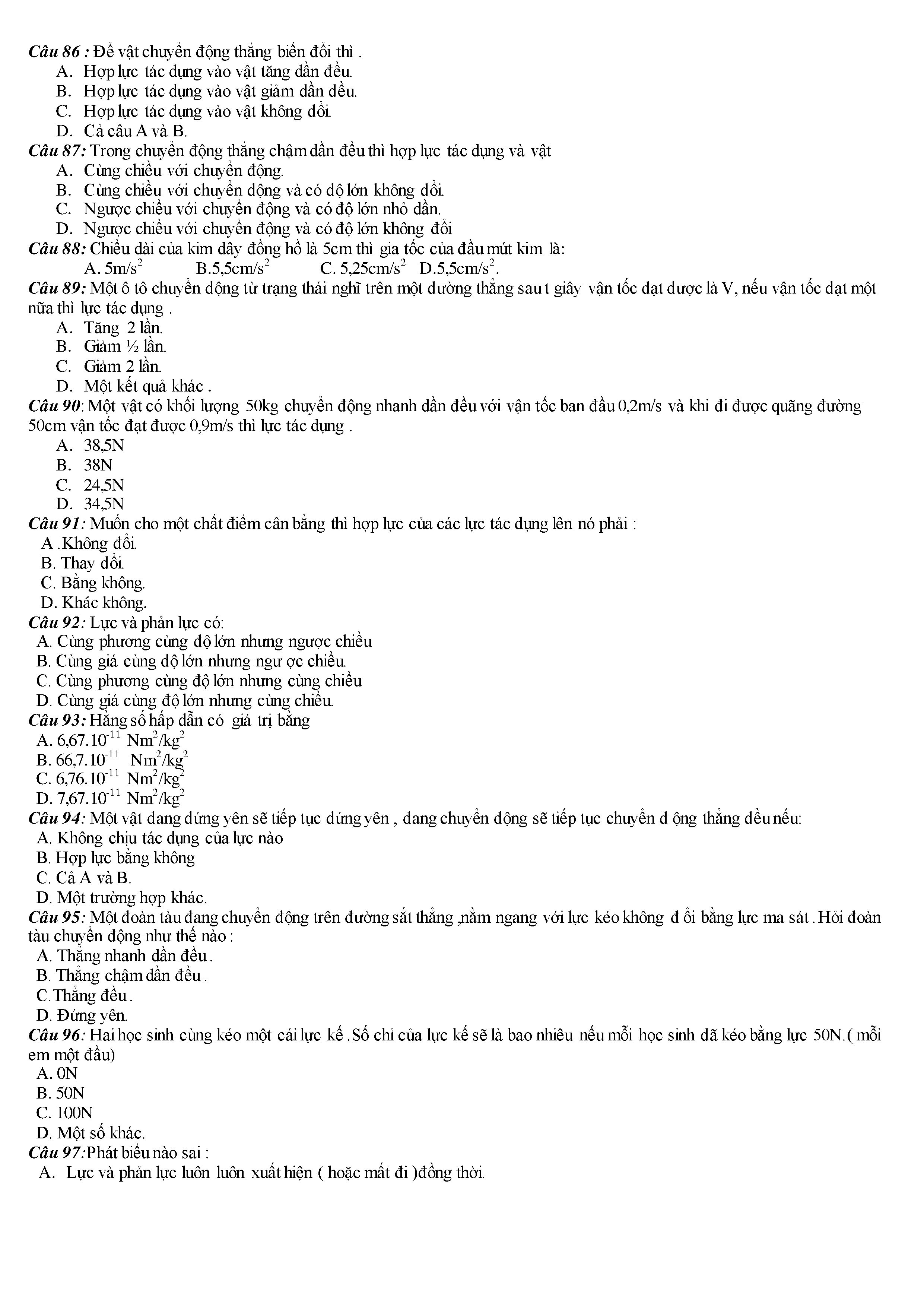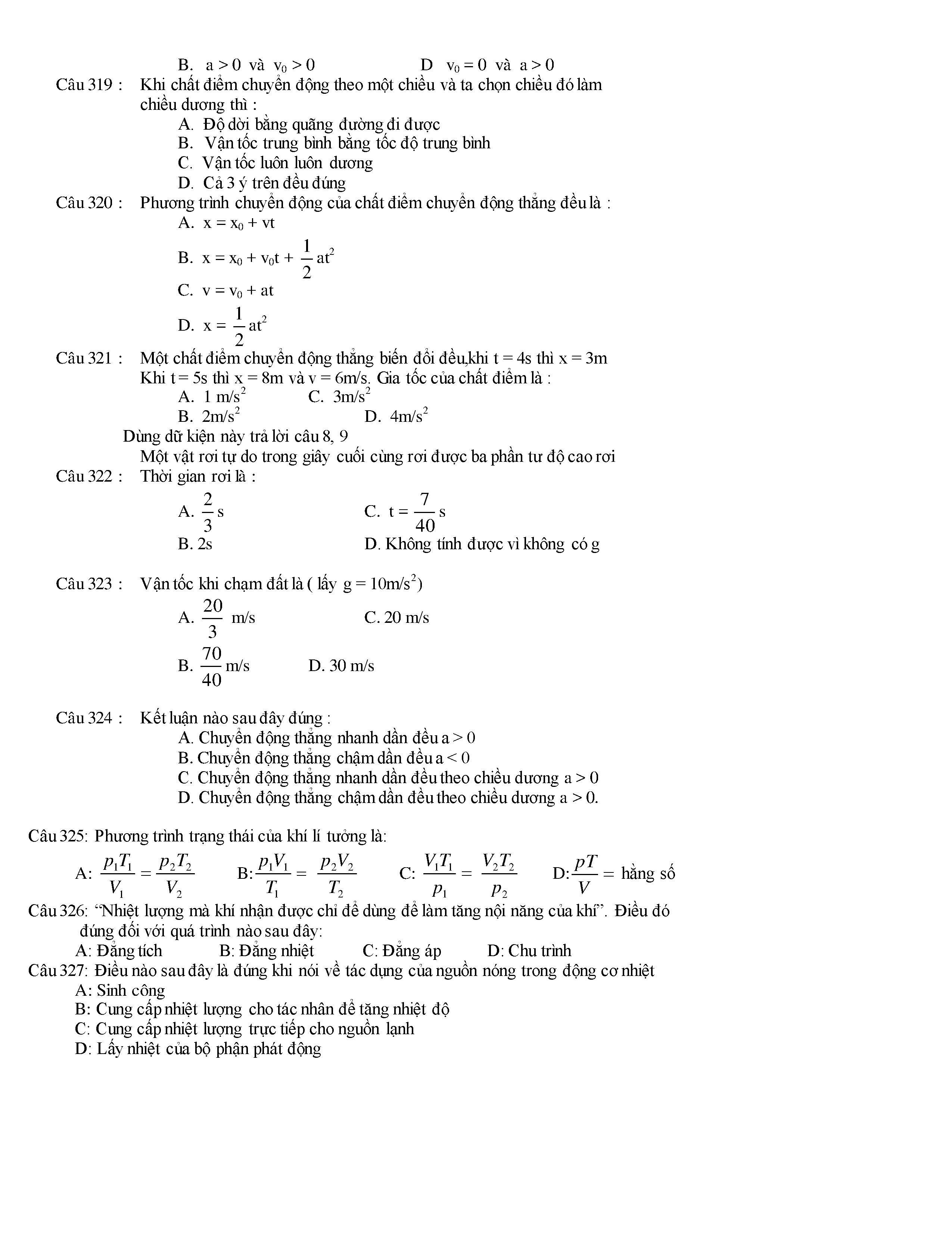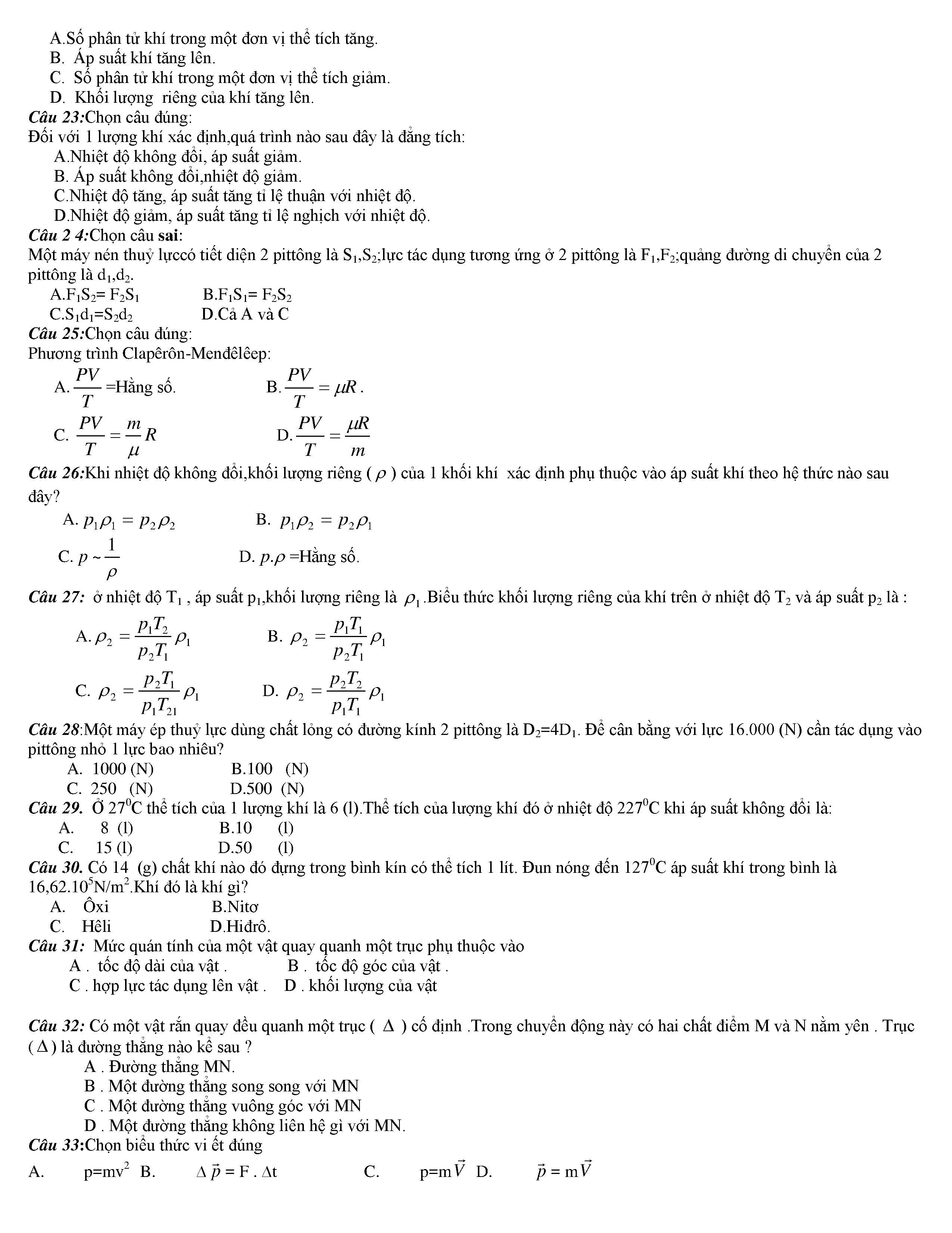 Tuyển tập các câu hỏi vật lí 10