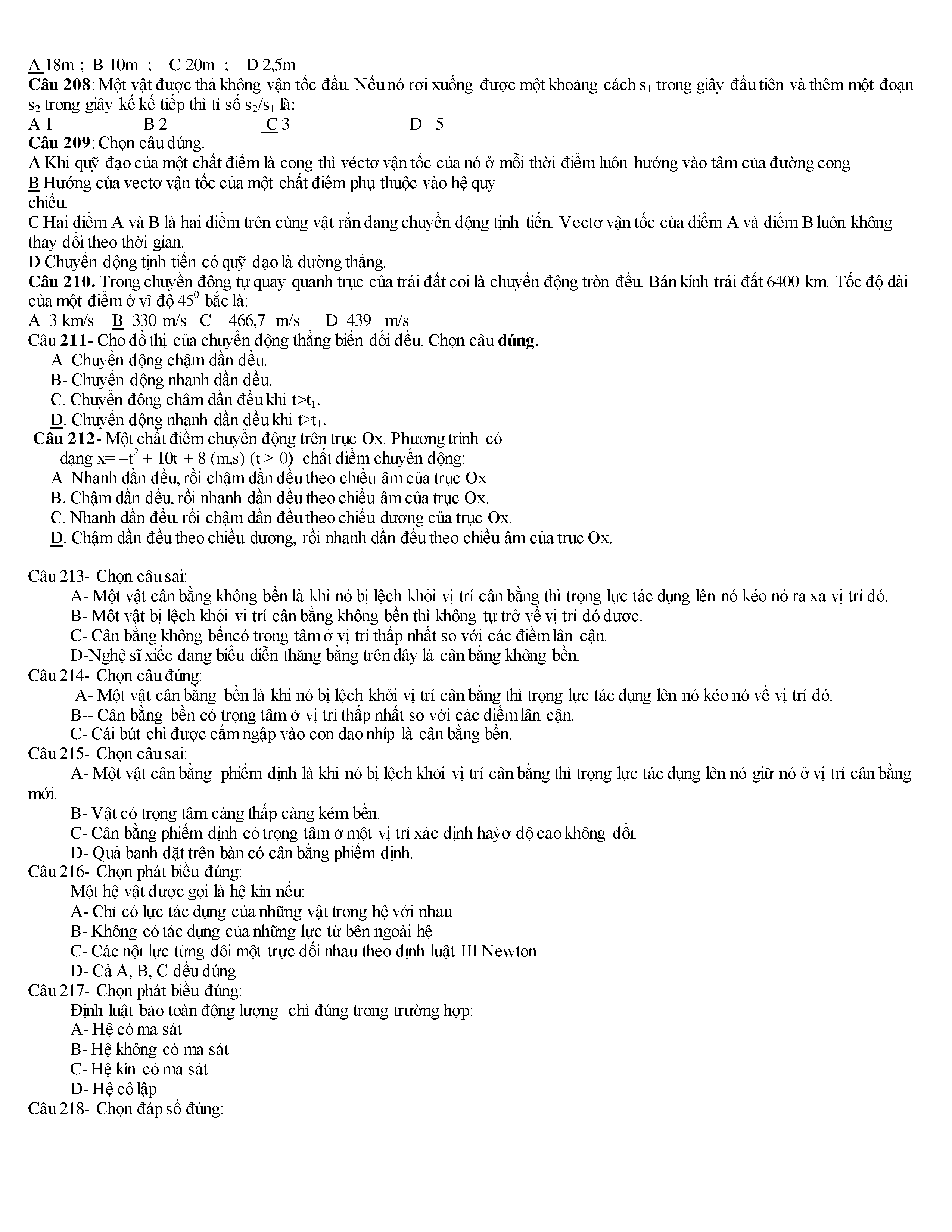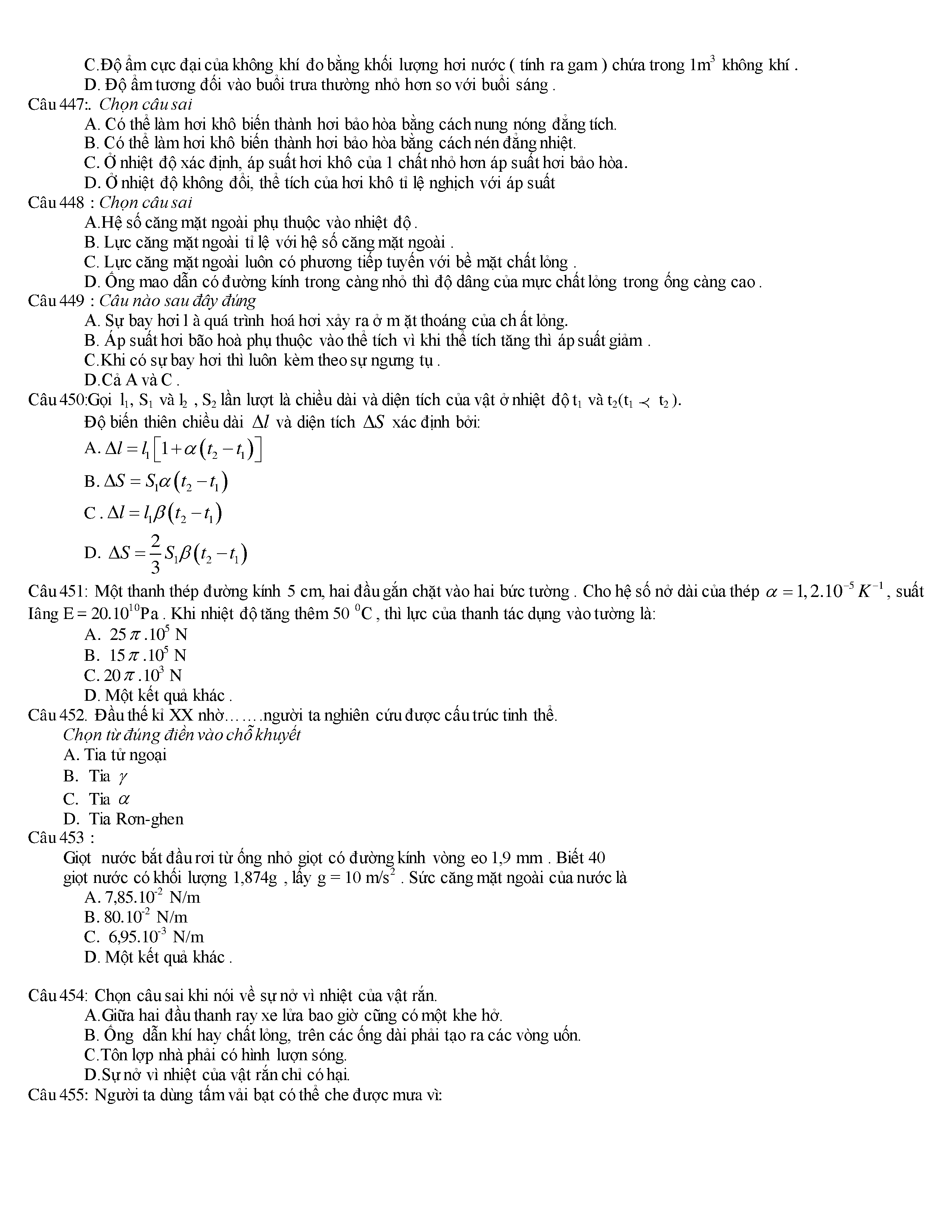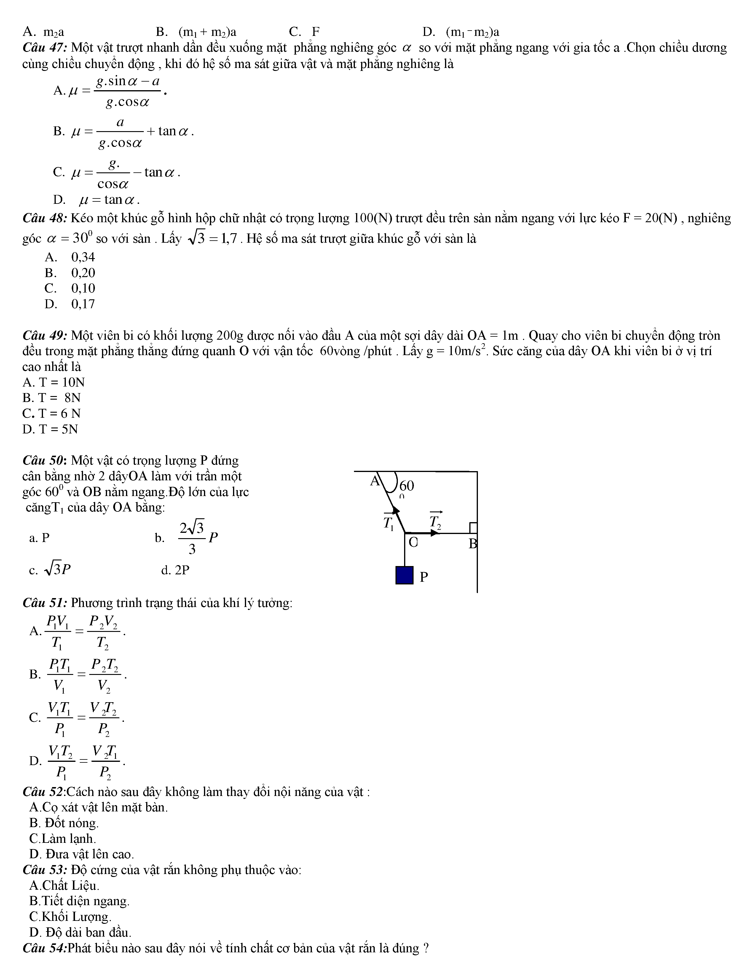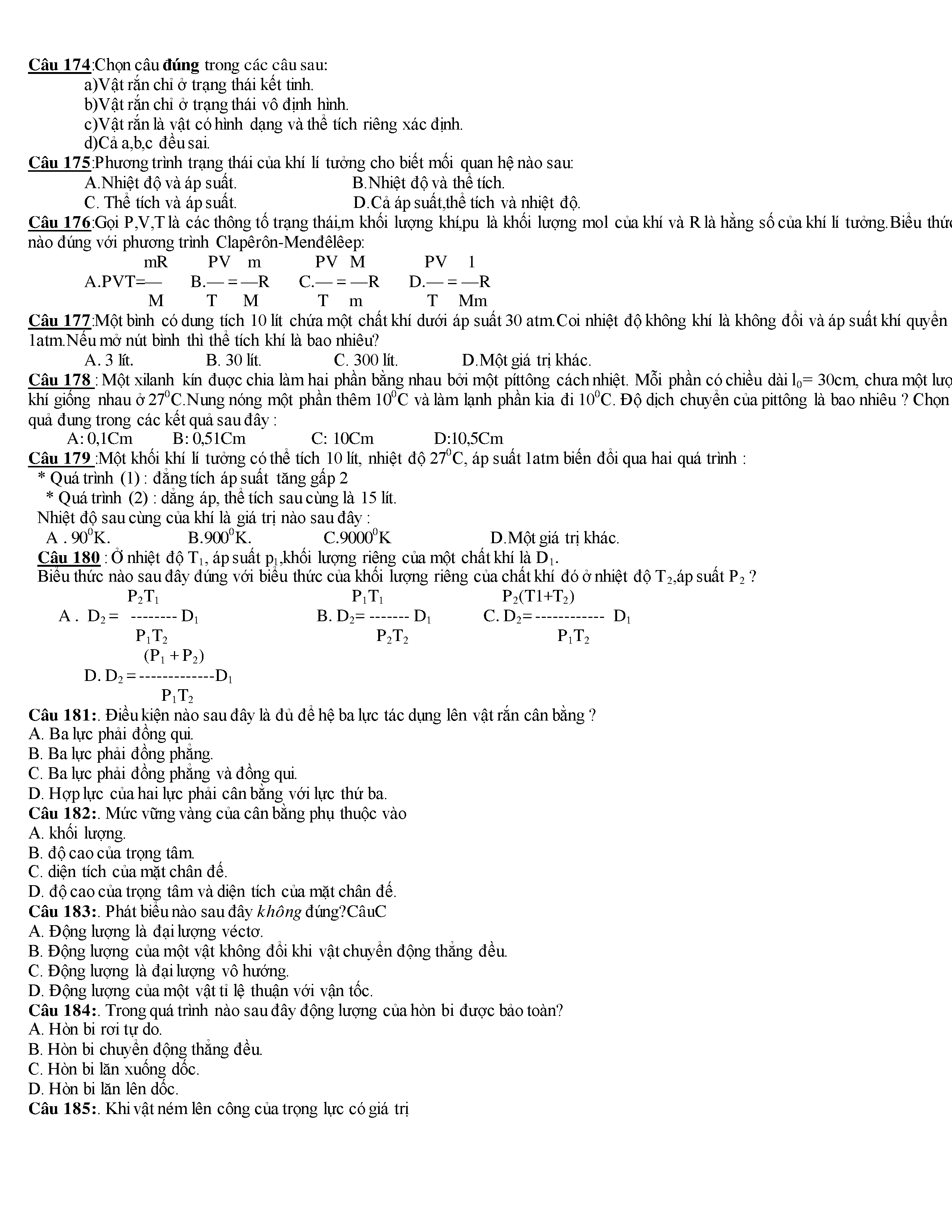 Tuyển tập các câu hỏi vật lí 10
