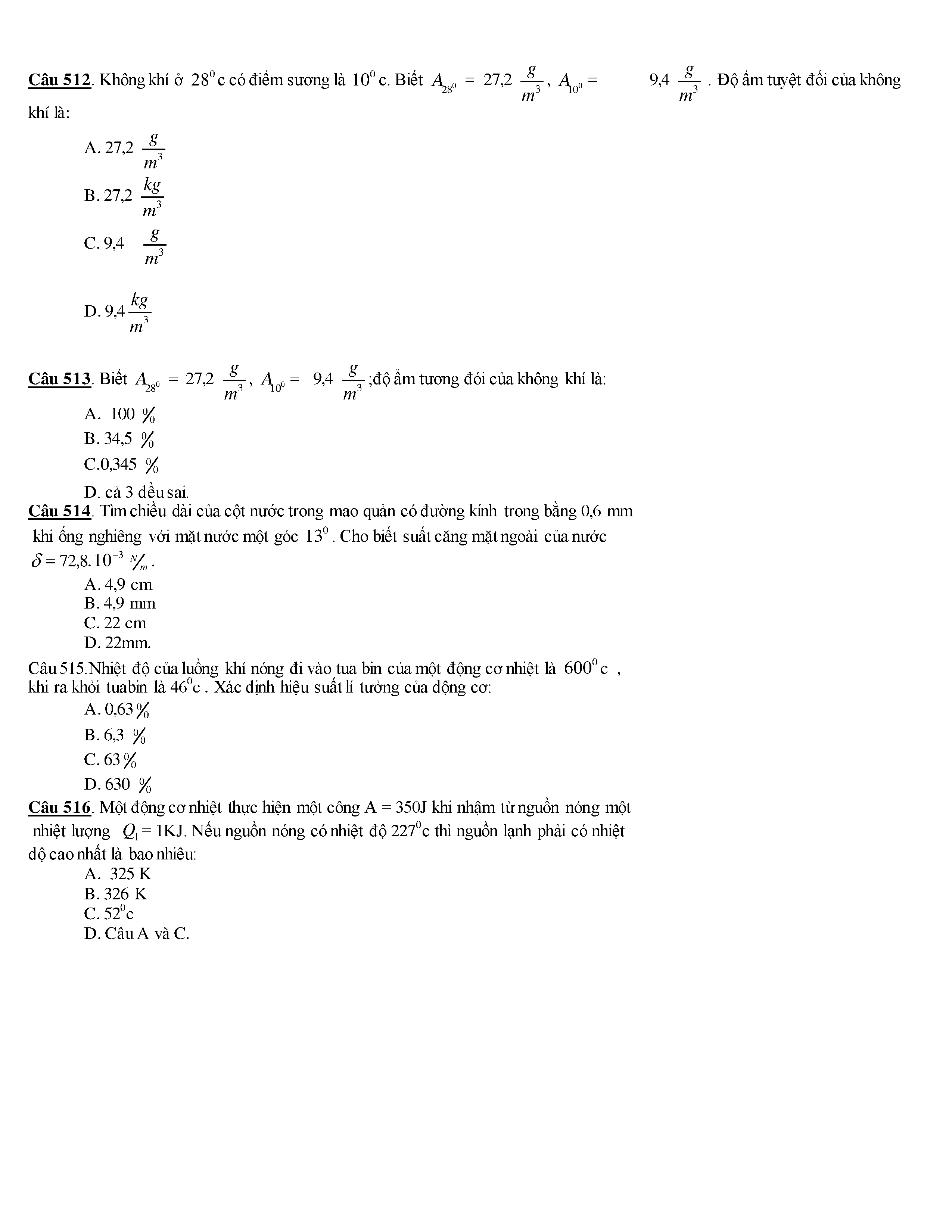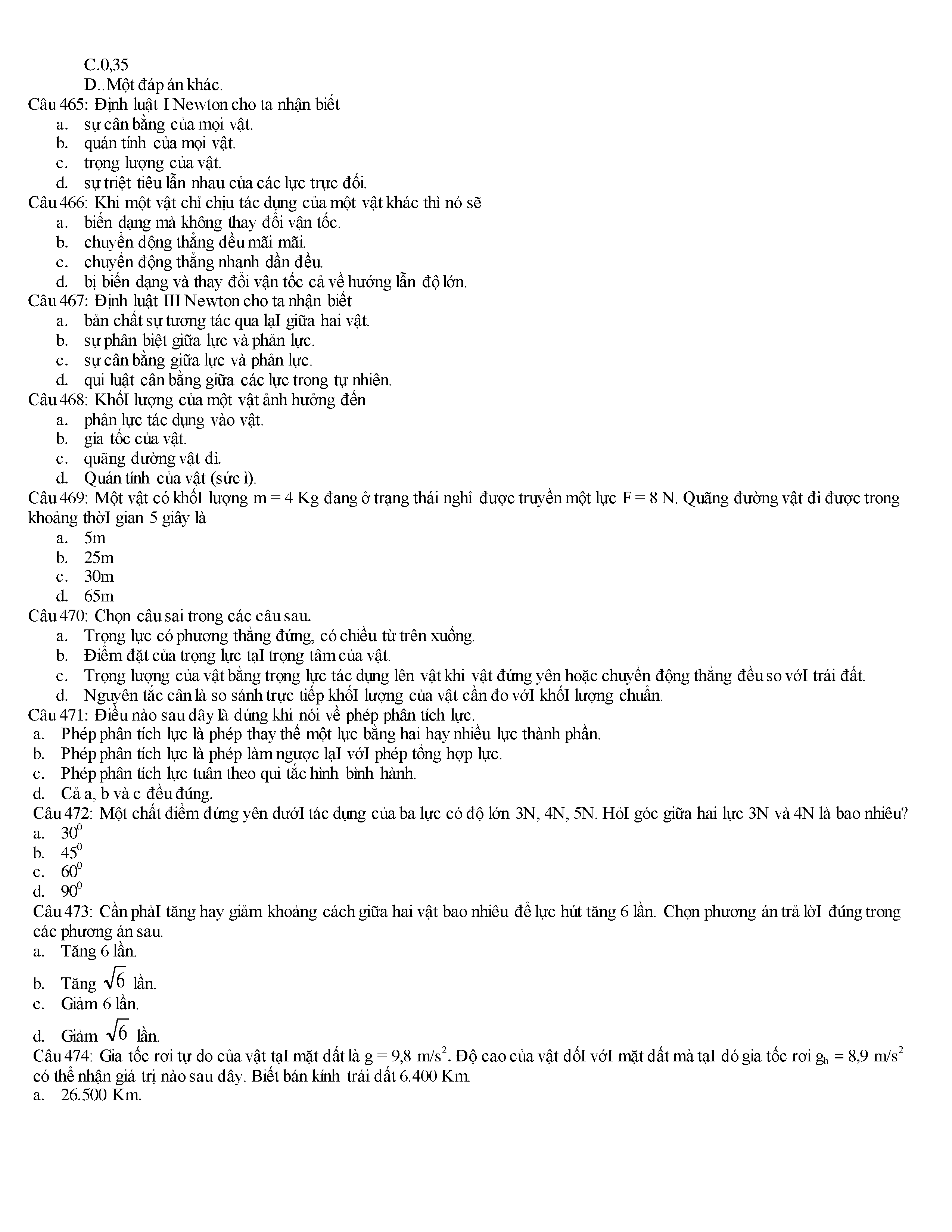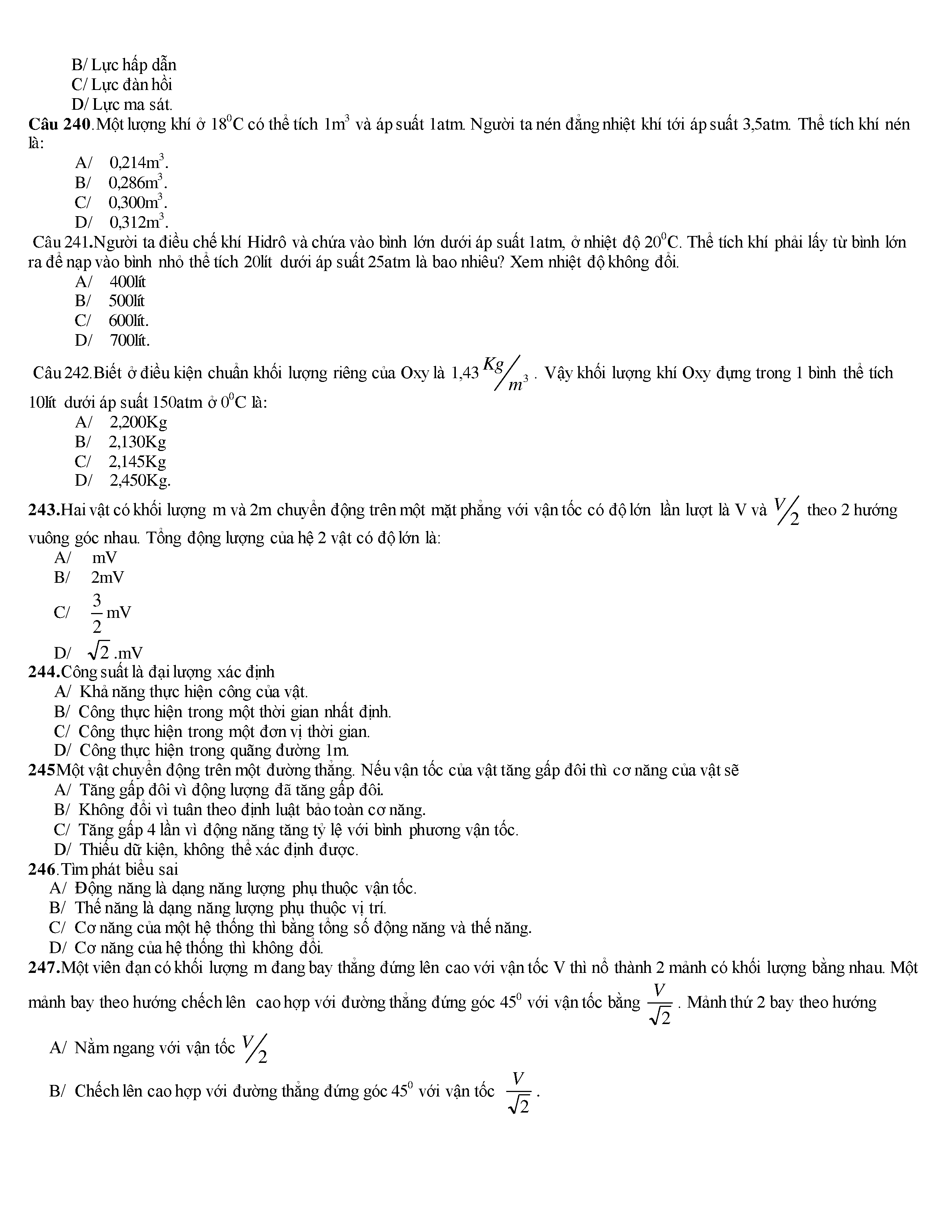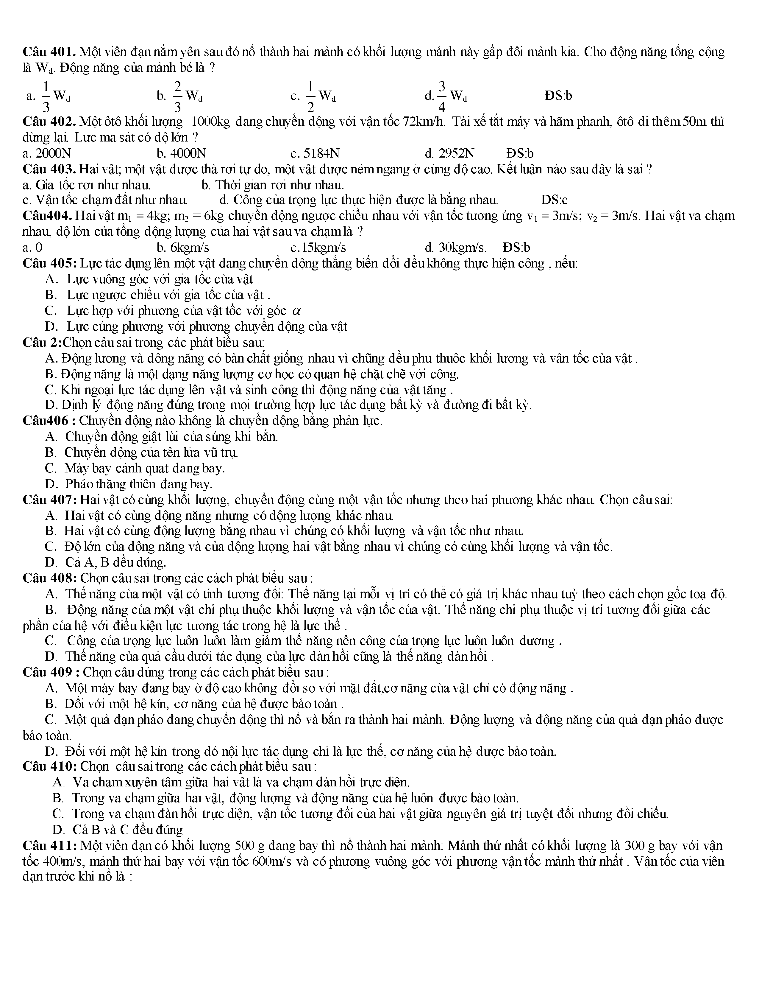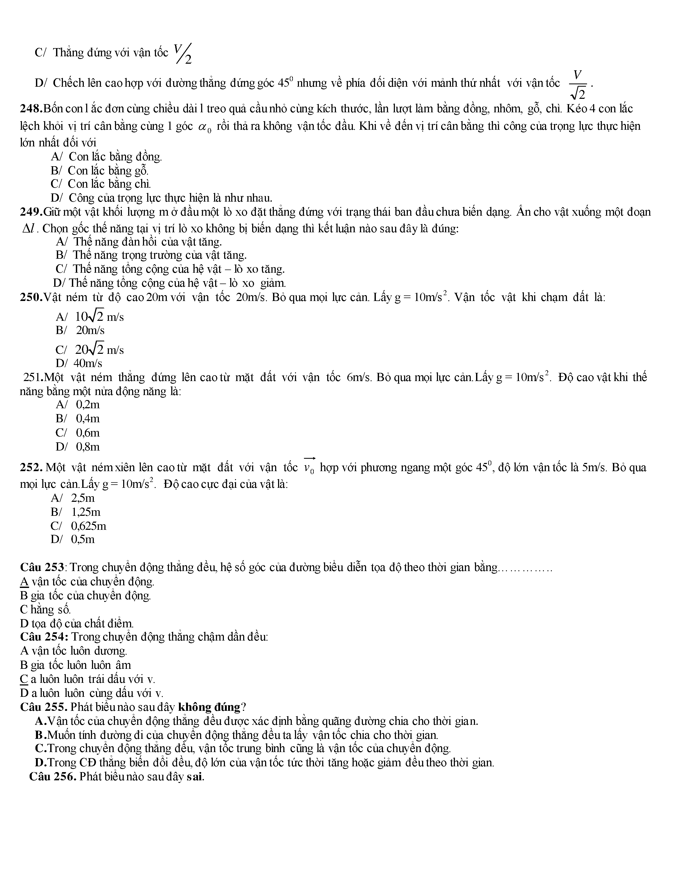 Tuyển tập các câu hỏi vật lí 10