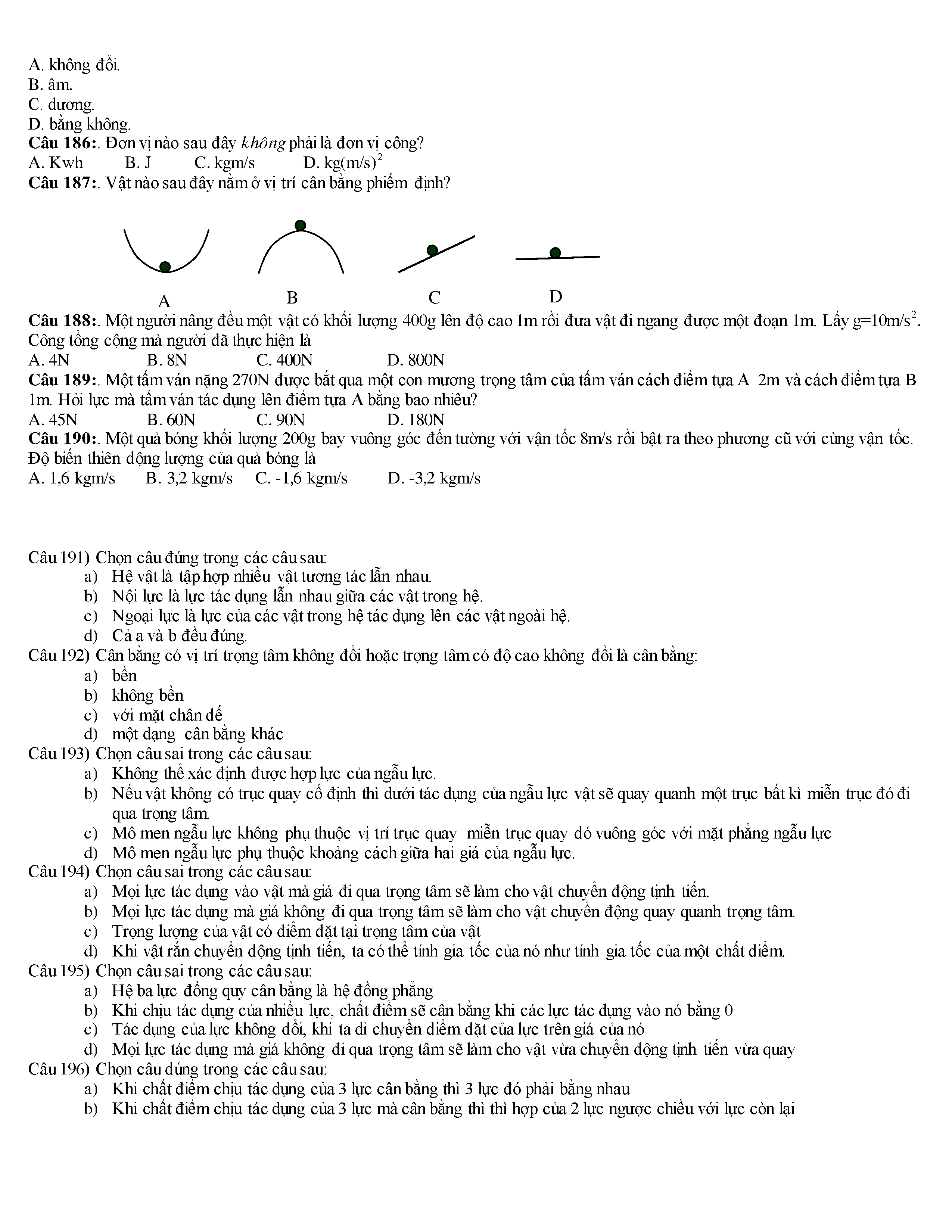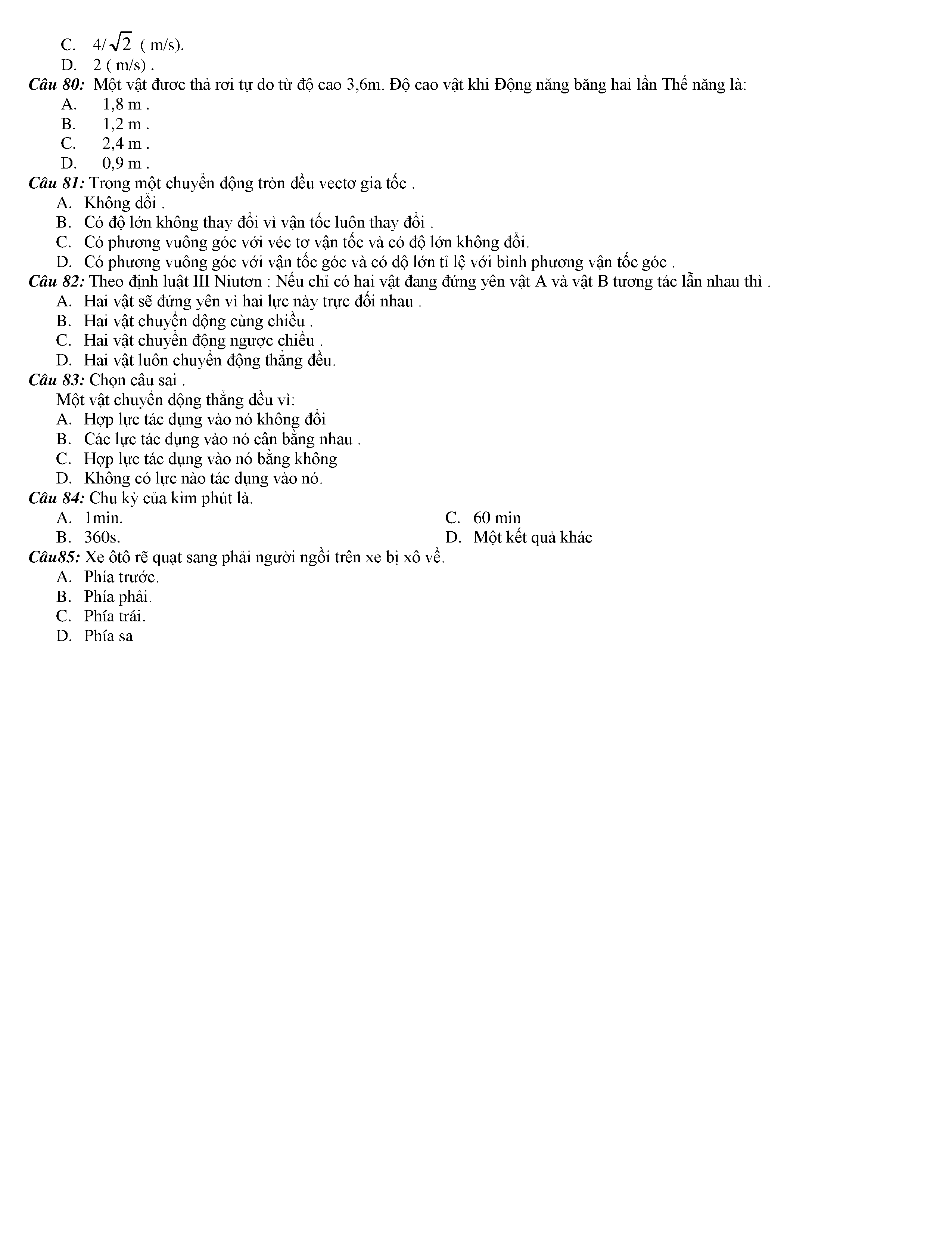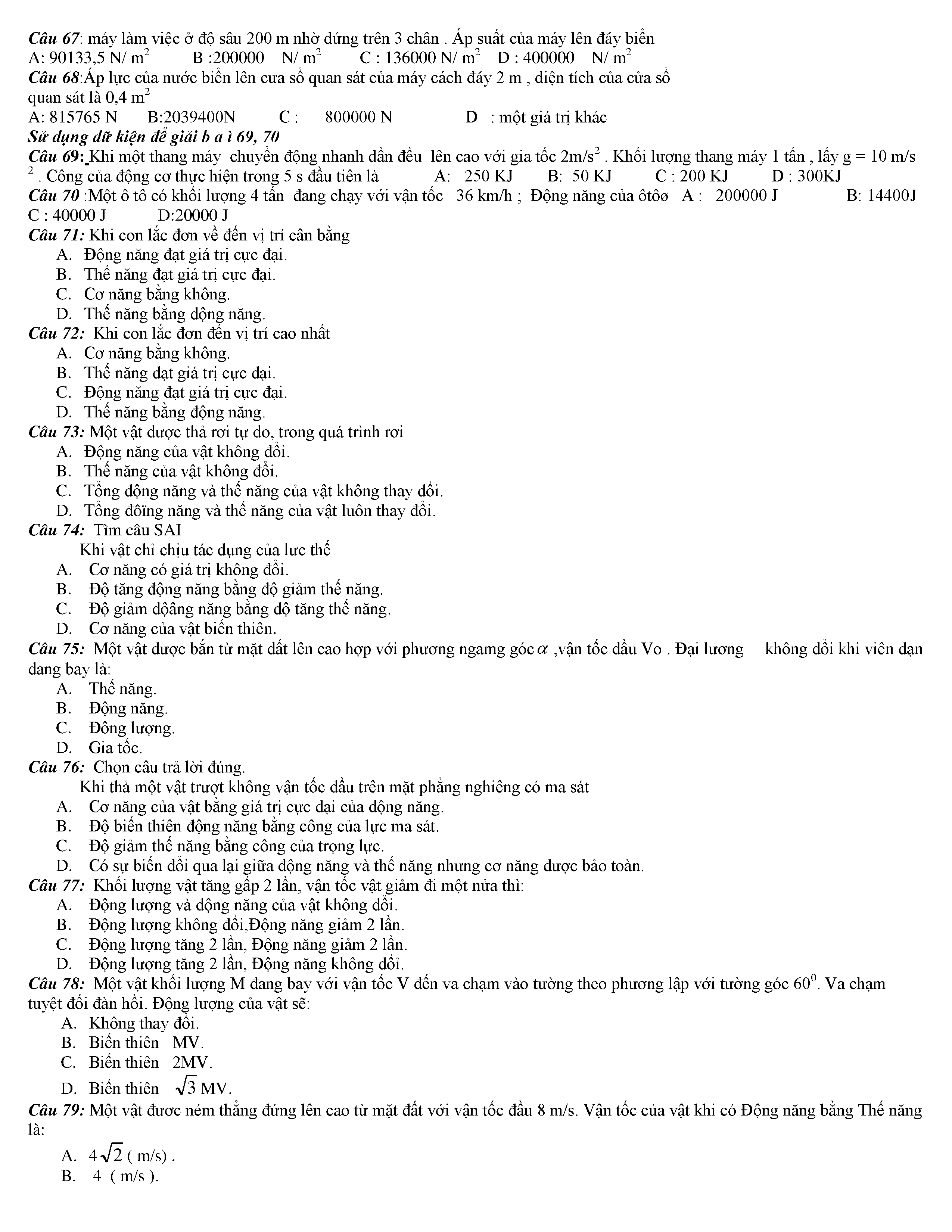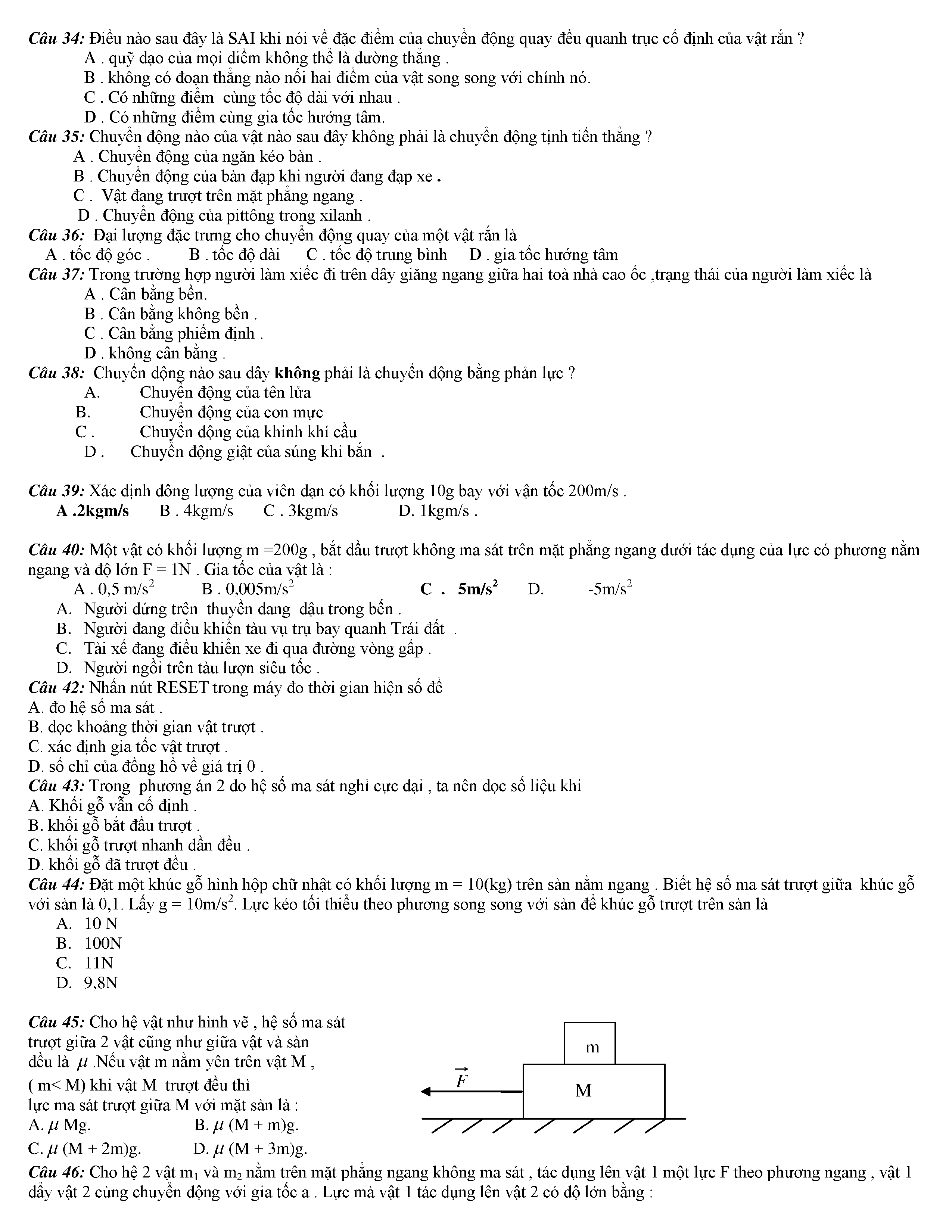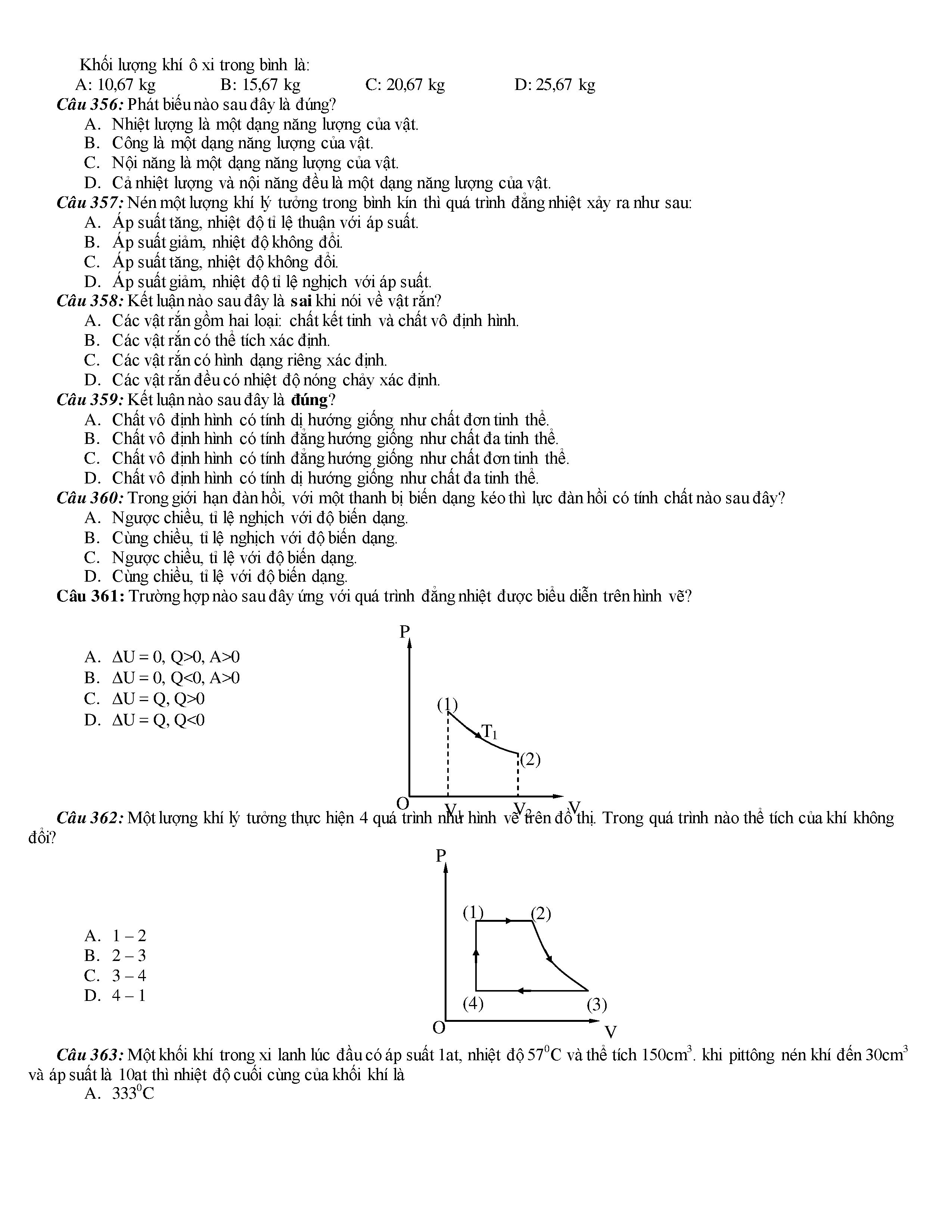 Tuyển tập các câu hỏi vật lí 10
