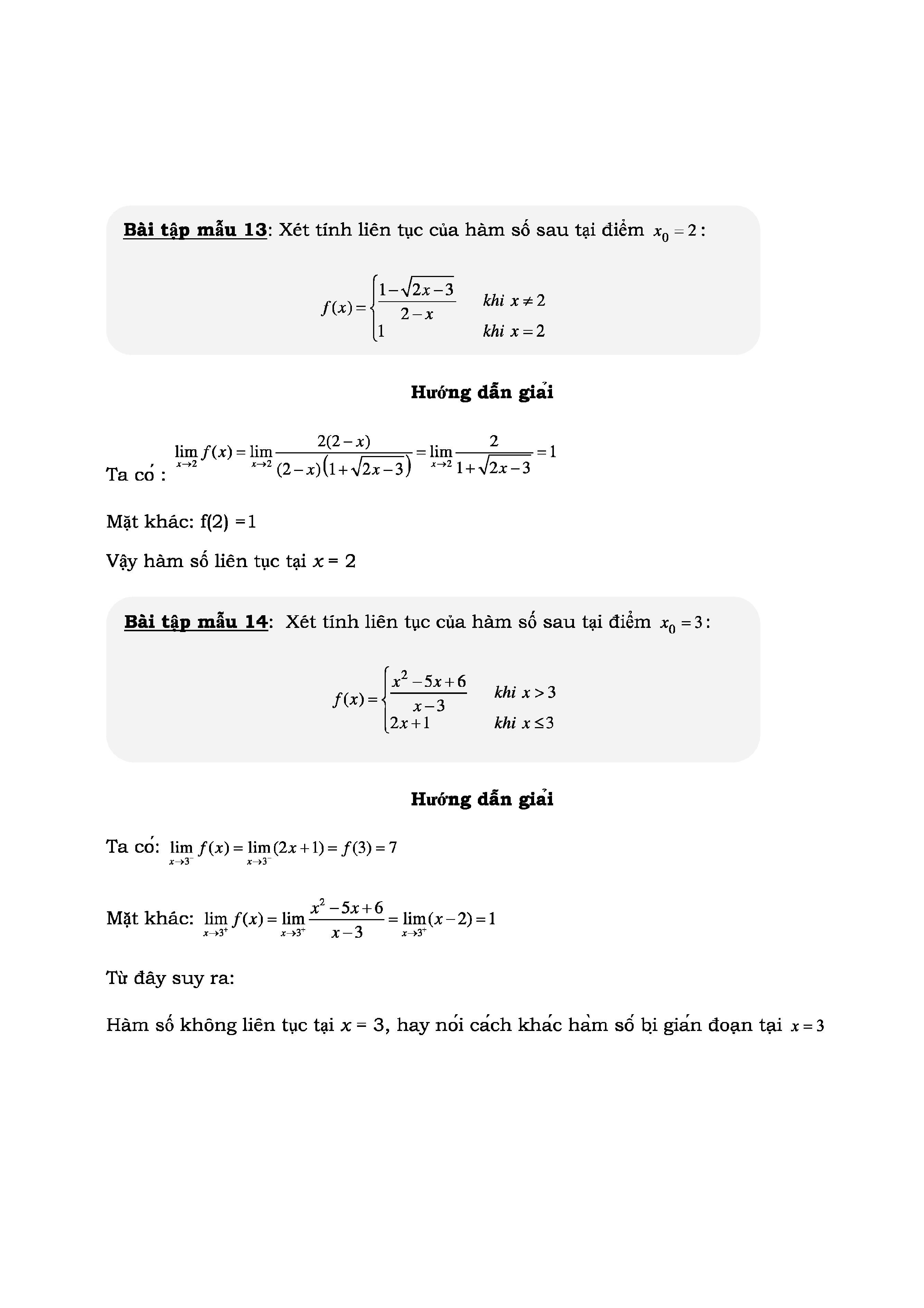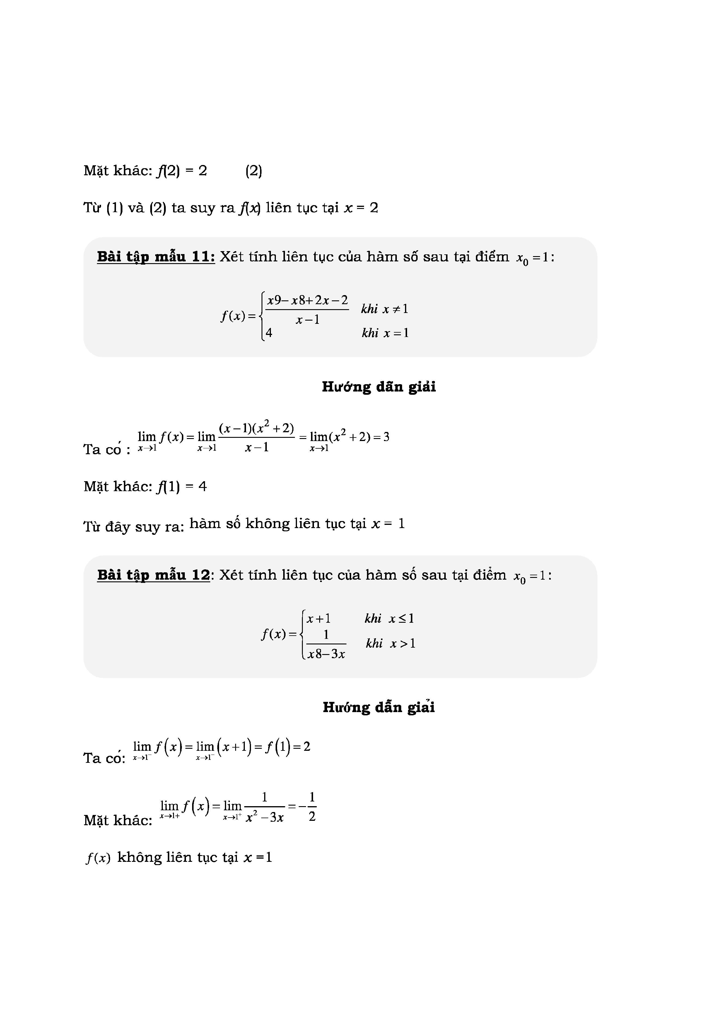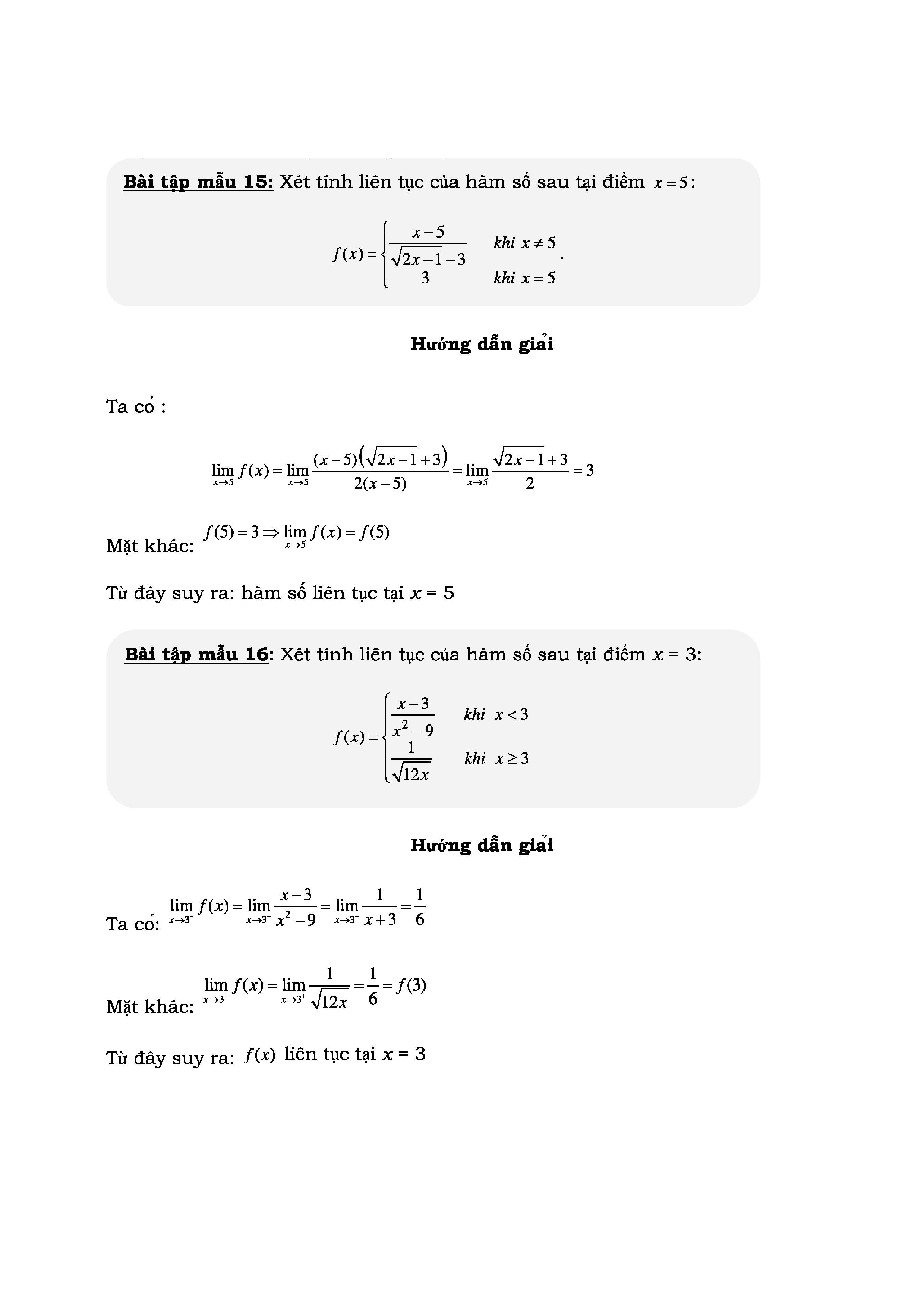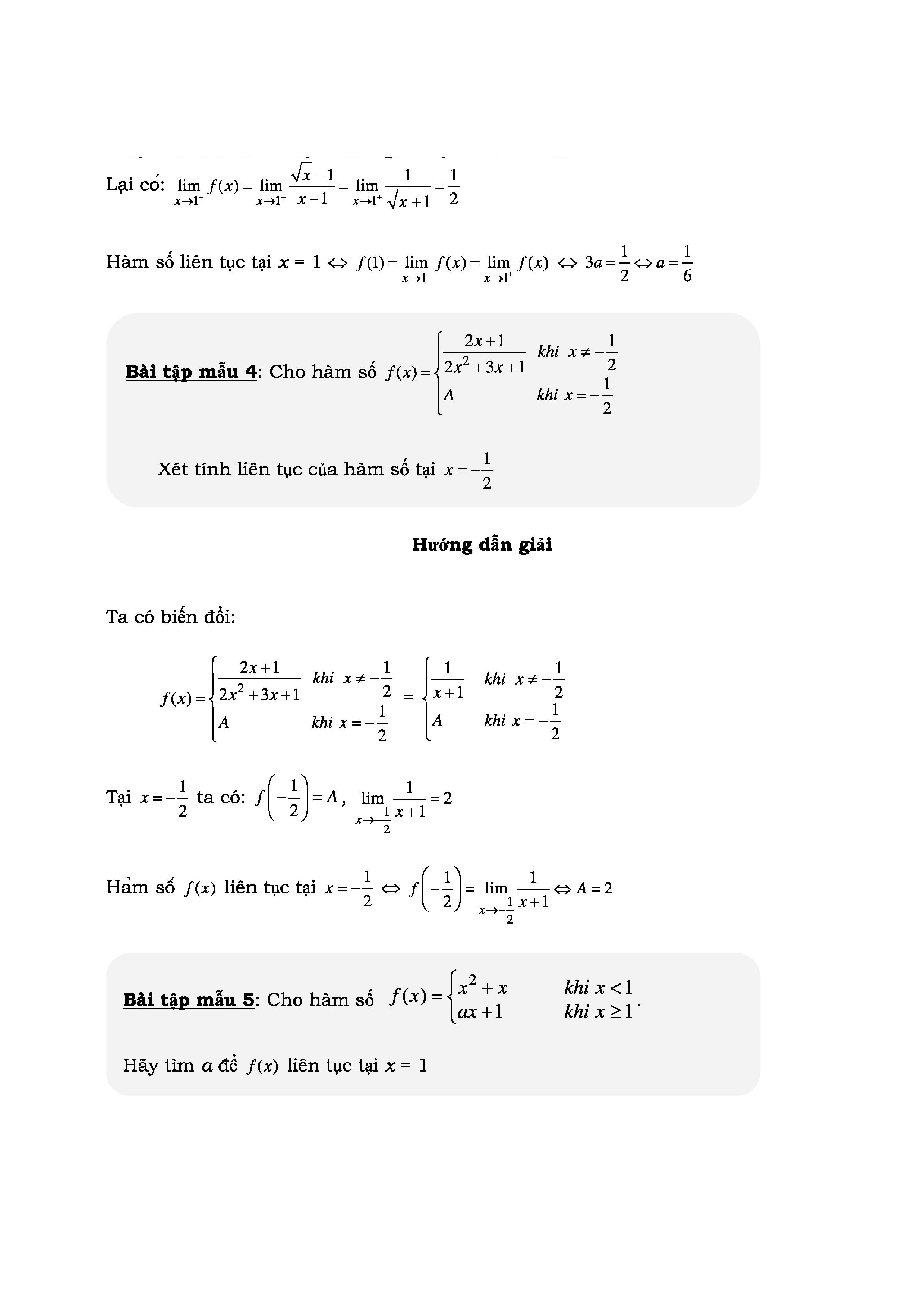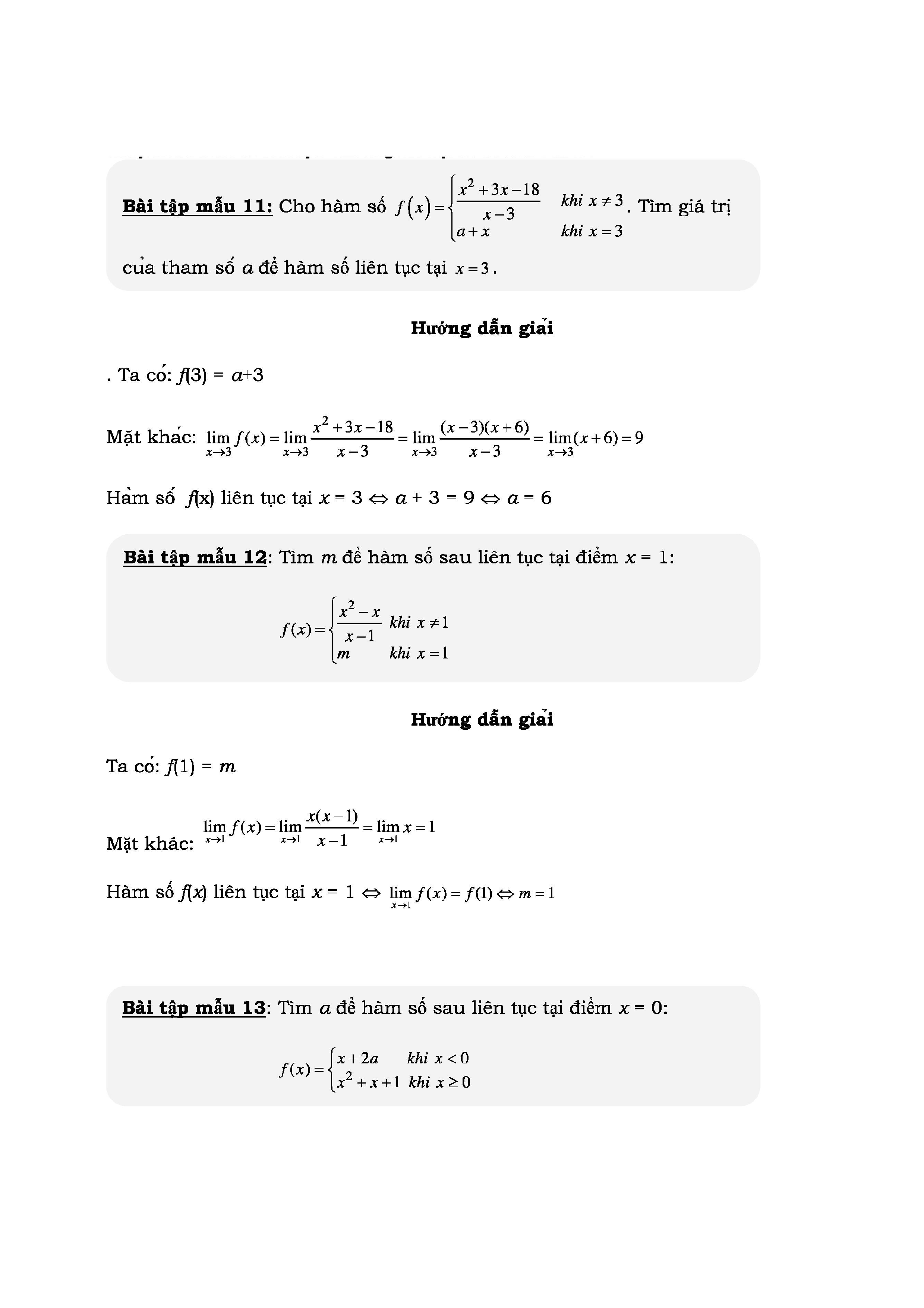 ÔN TẬP KIỂM TRA HÀM SỐ LIÊN TỤC MÔN TOÁN LỚP 11