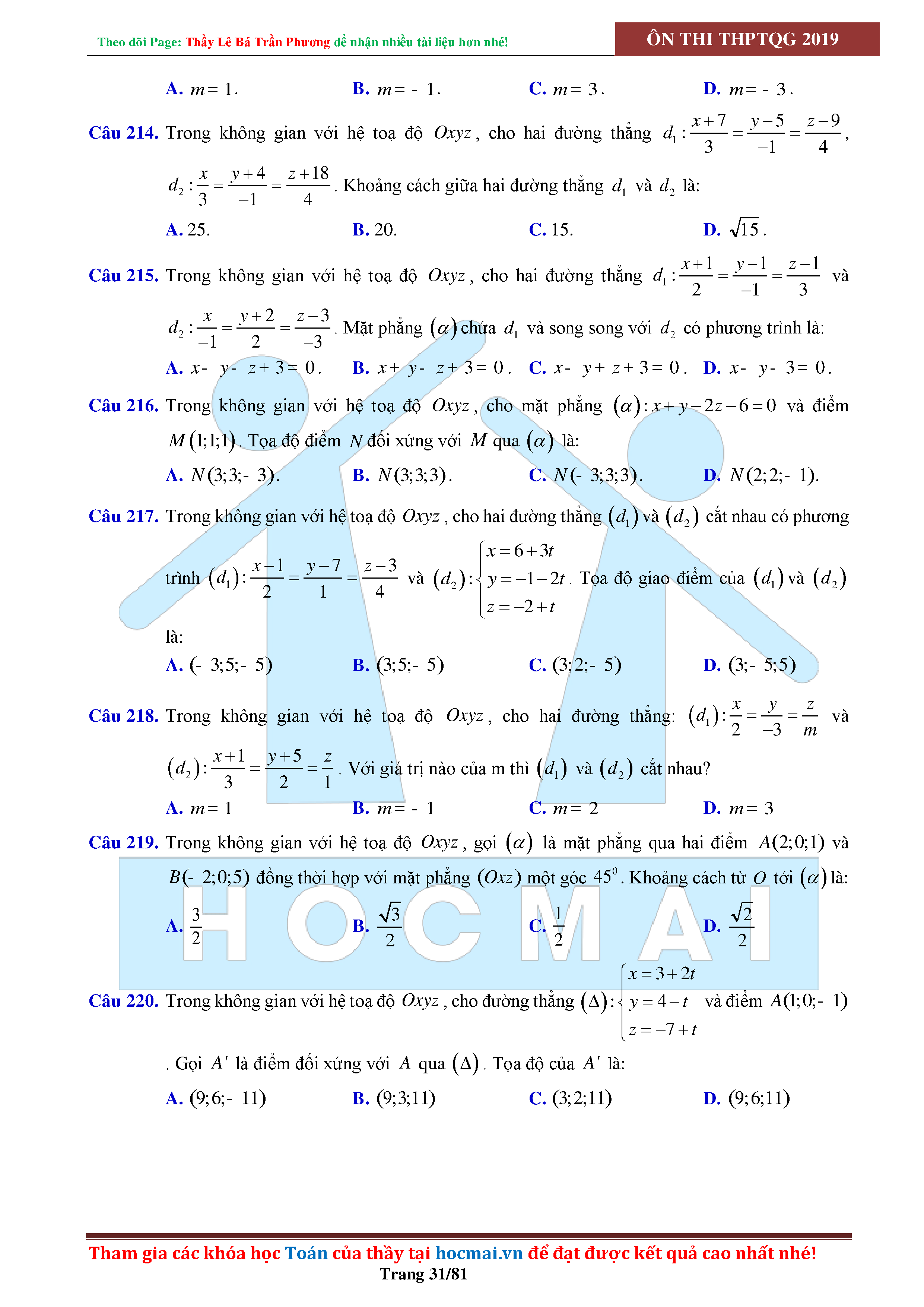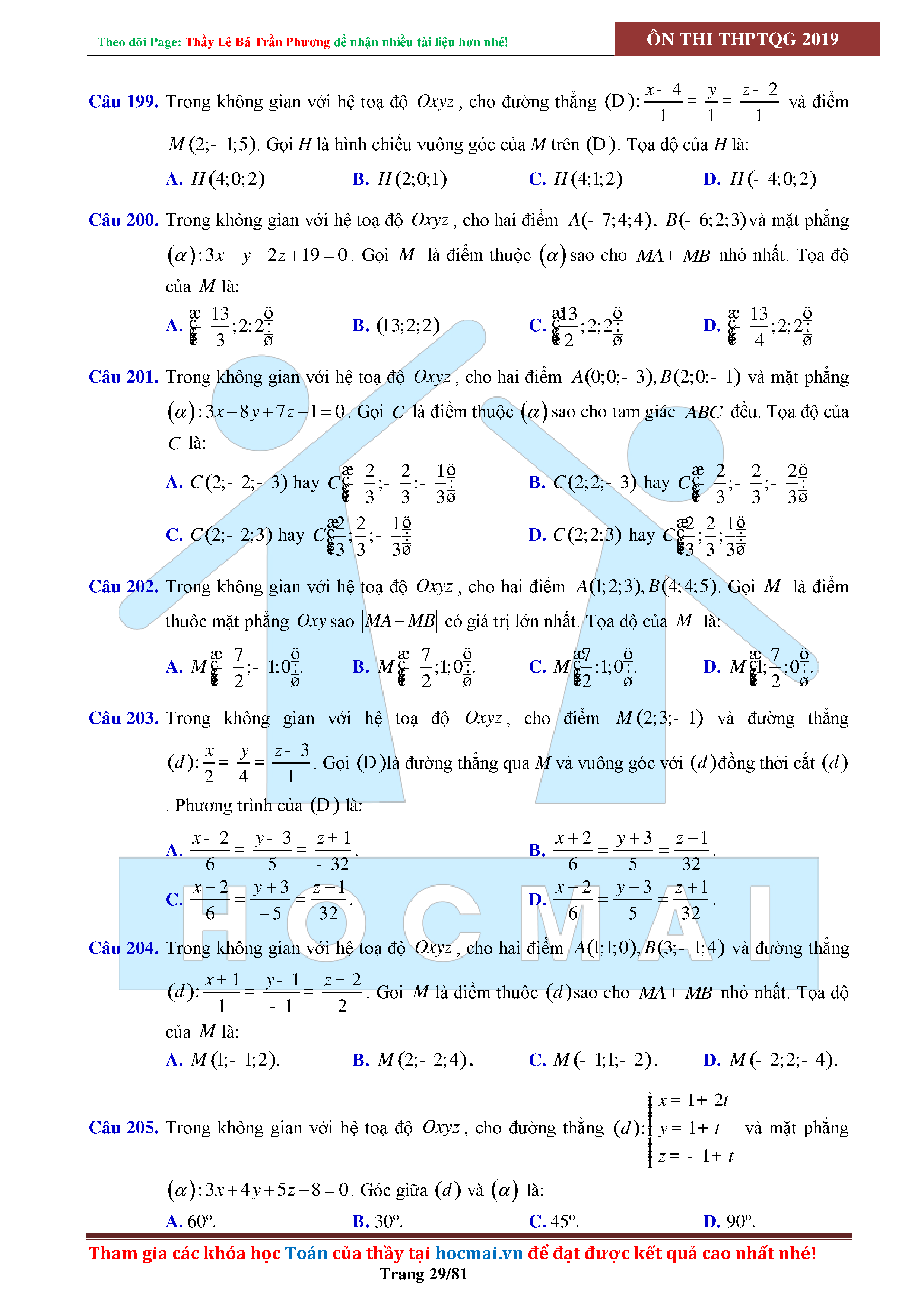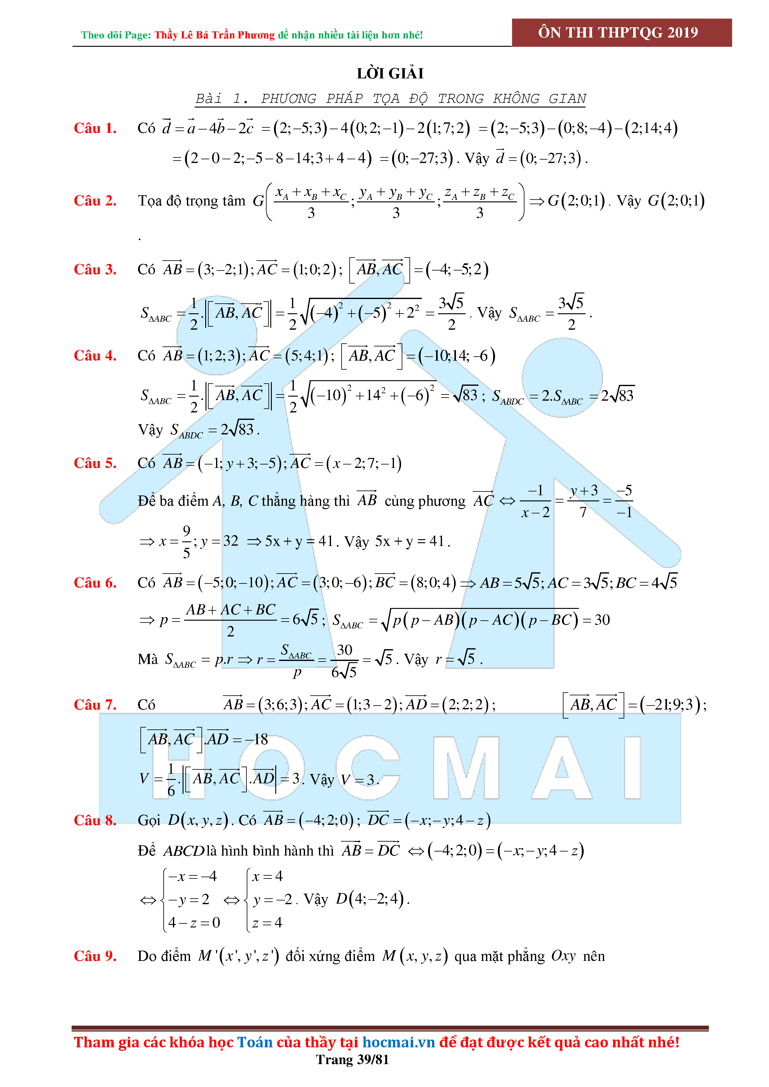 Tinh túy hình học không gian oxyz - có lời giải chi tiết