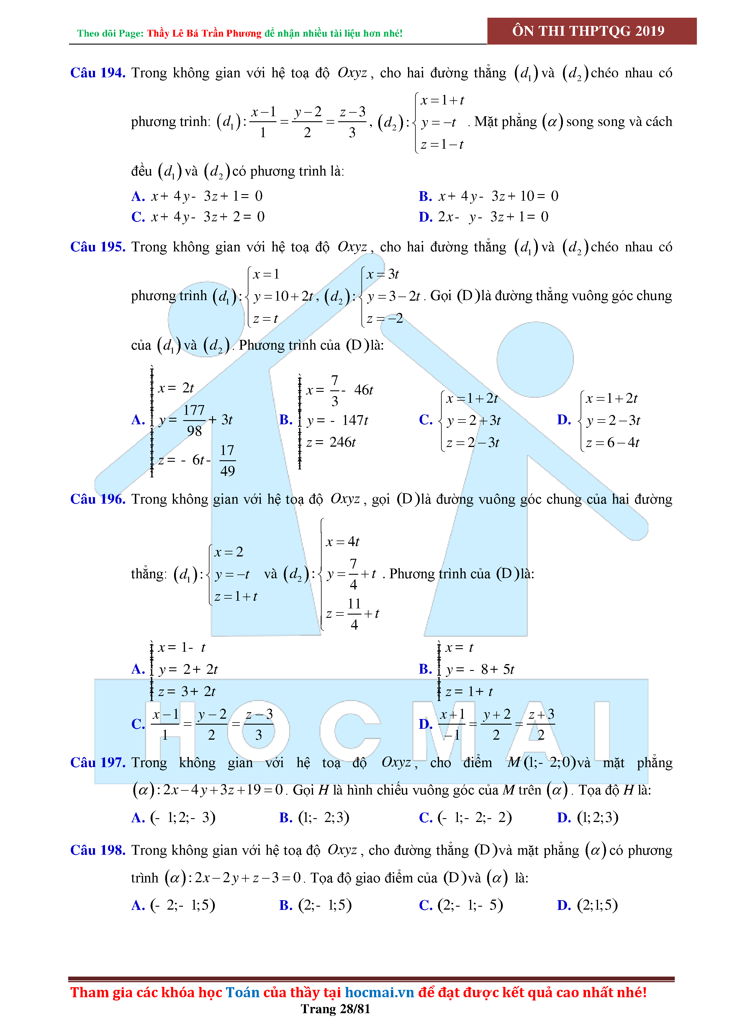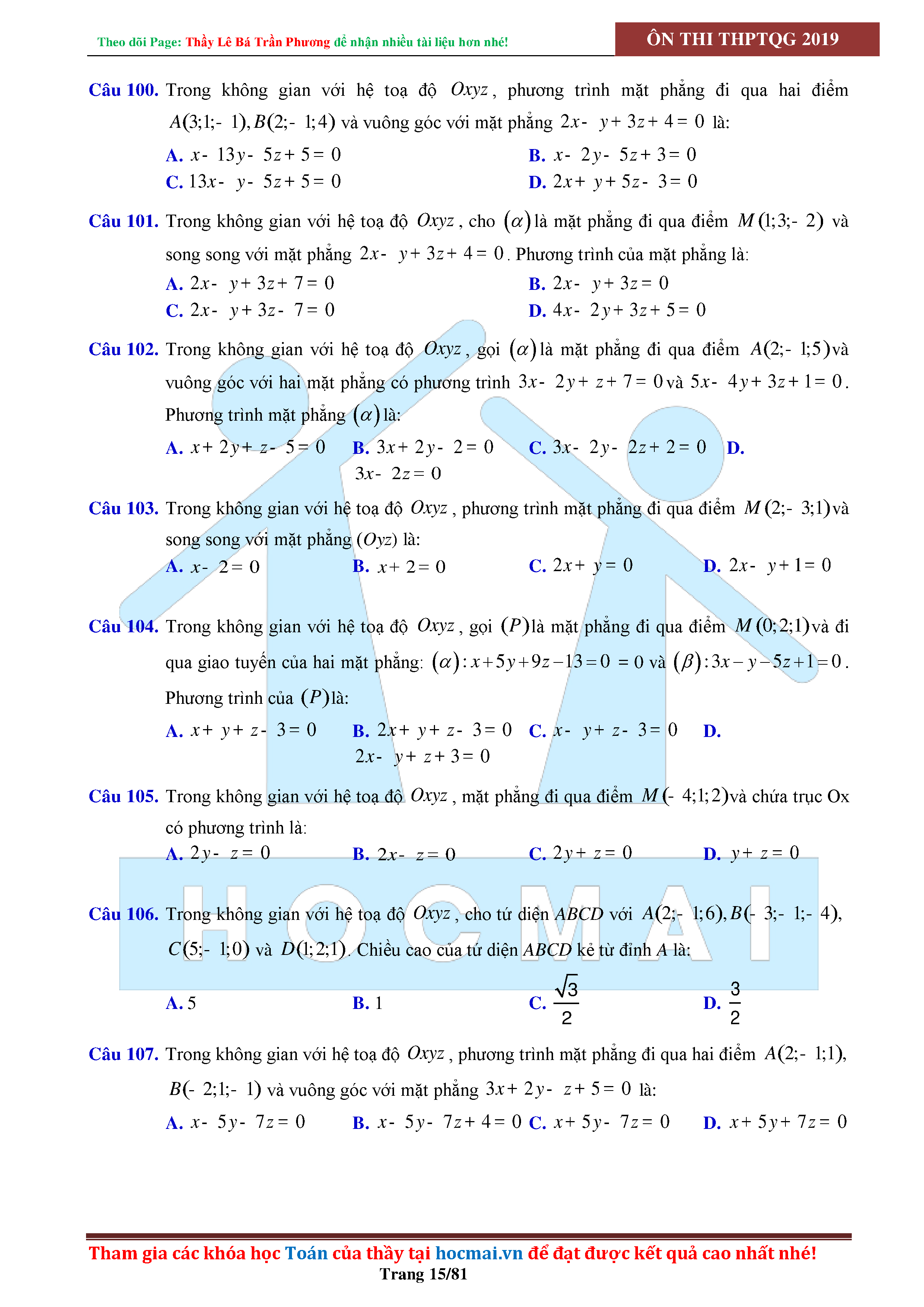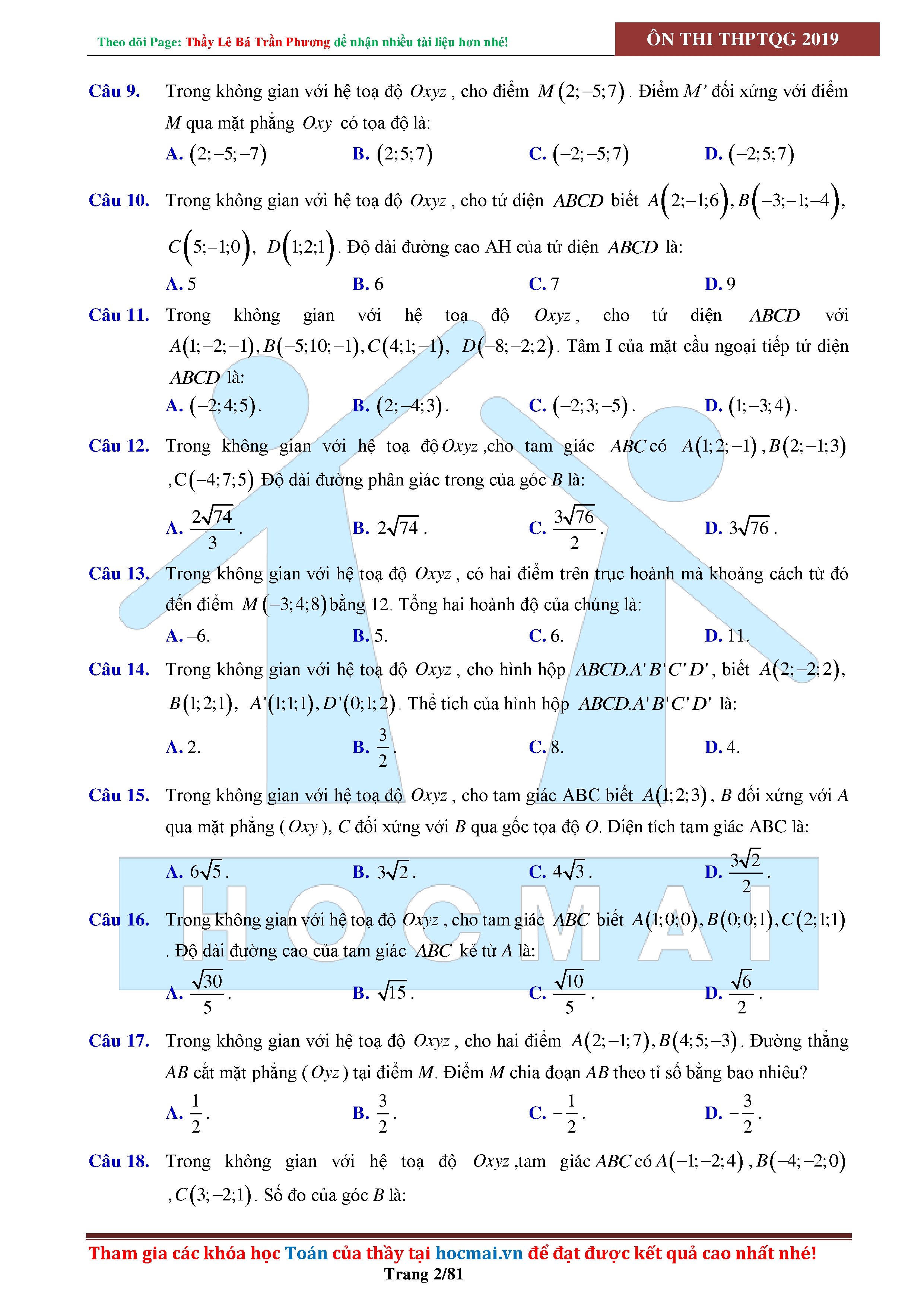 Tinh túy hình học không gian oxyz - có lời giải chi tiết