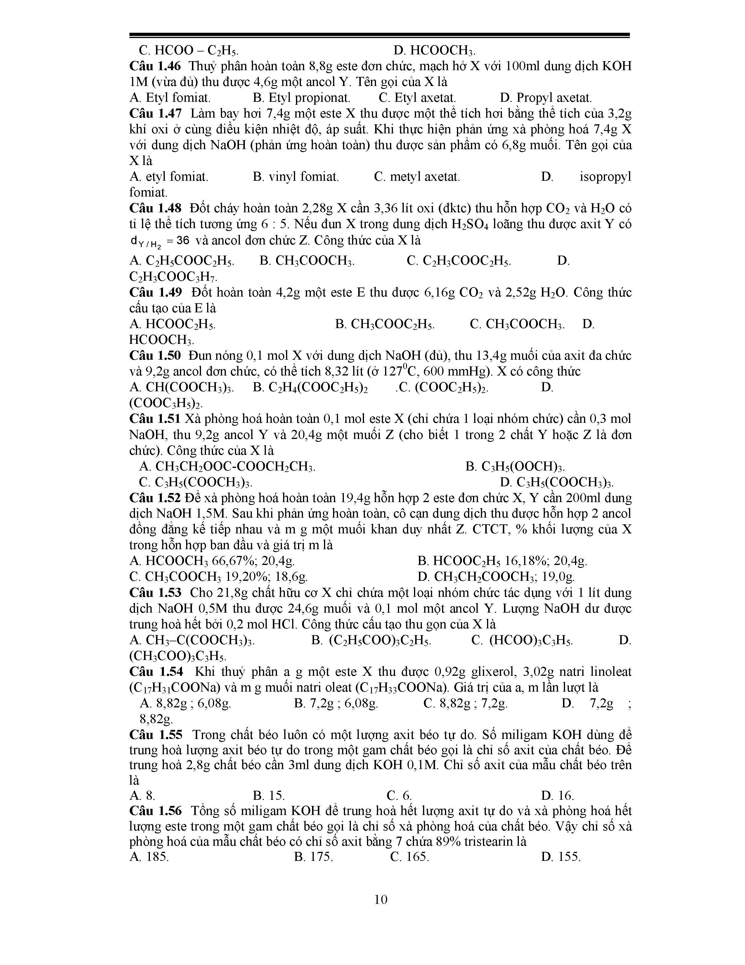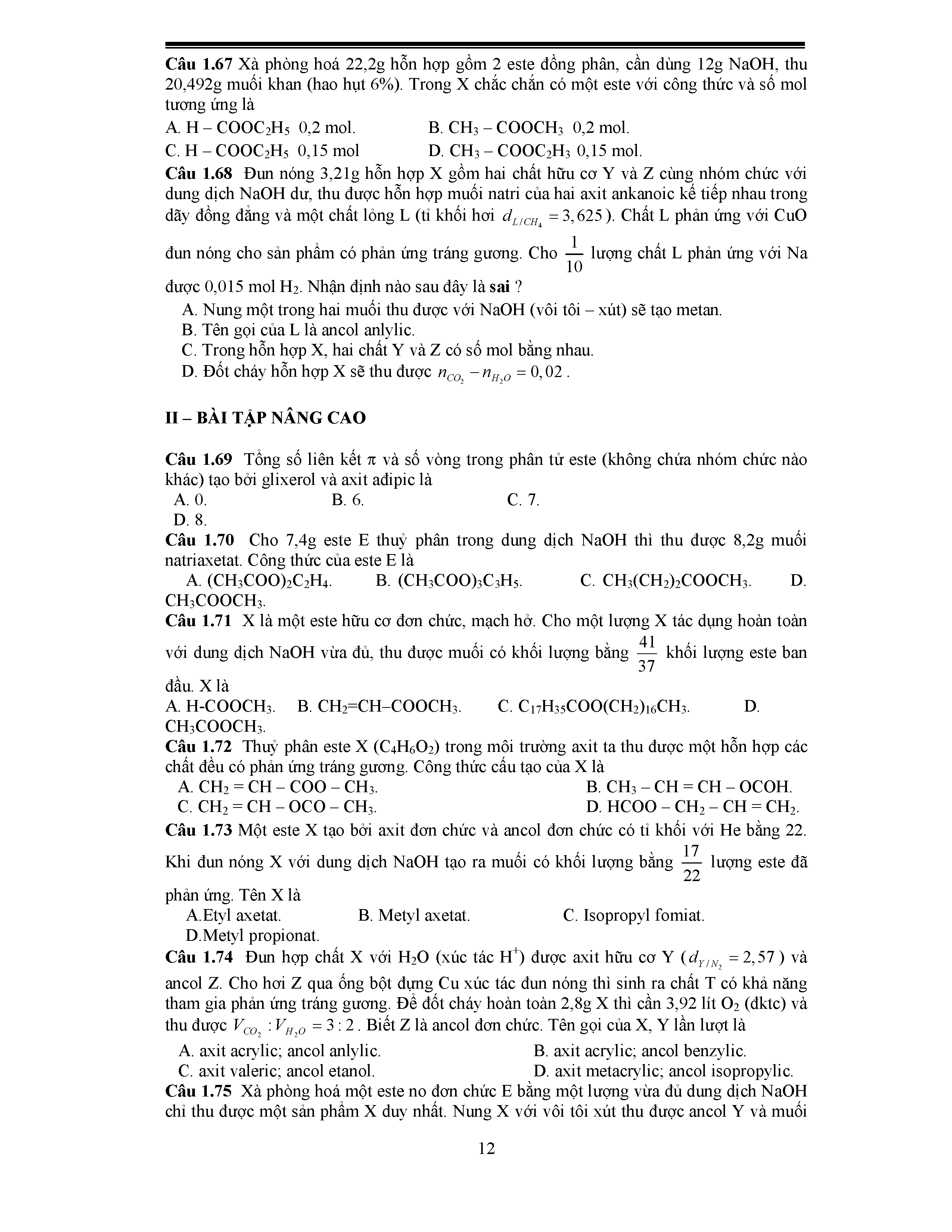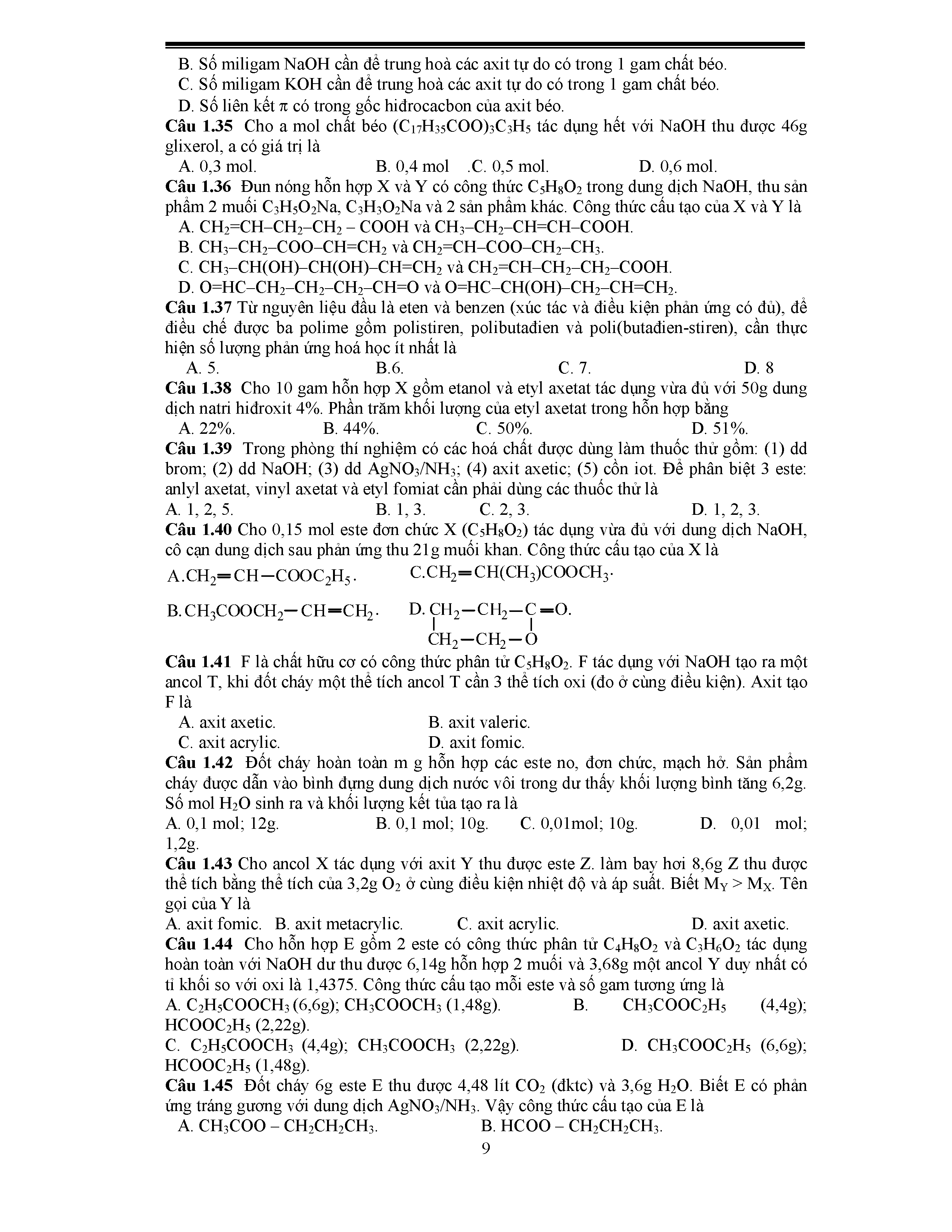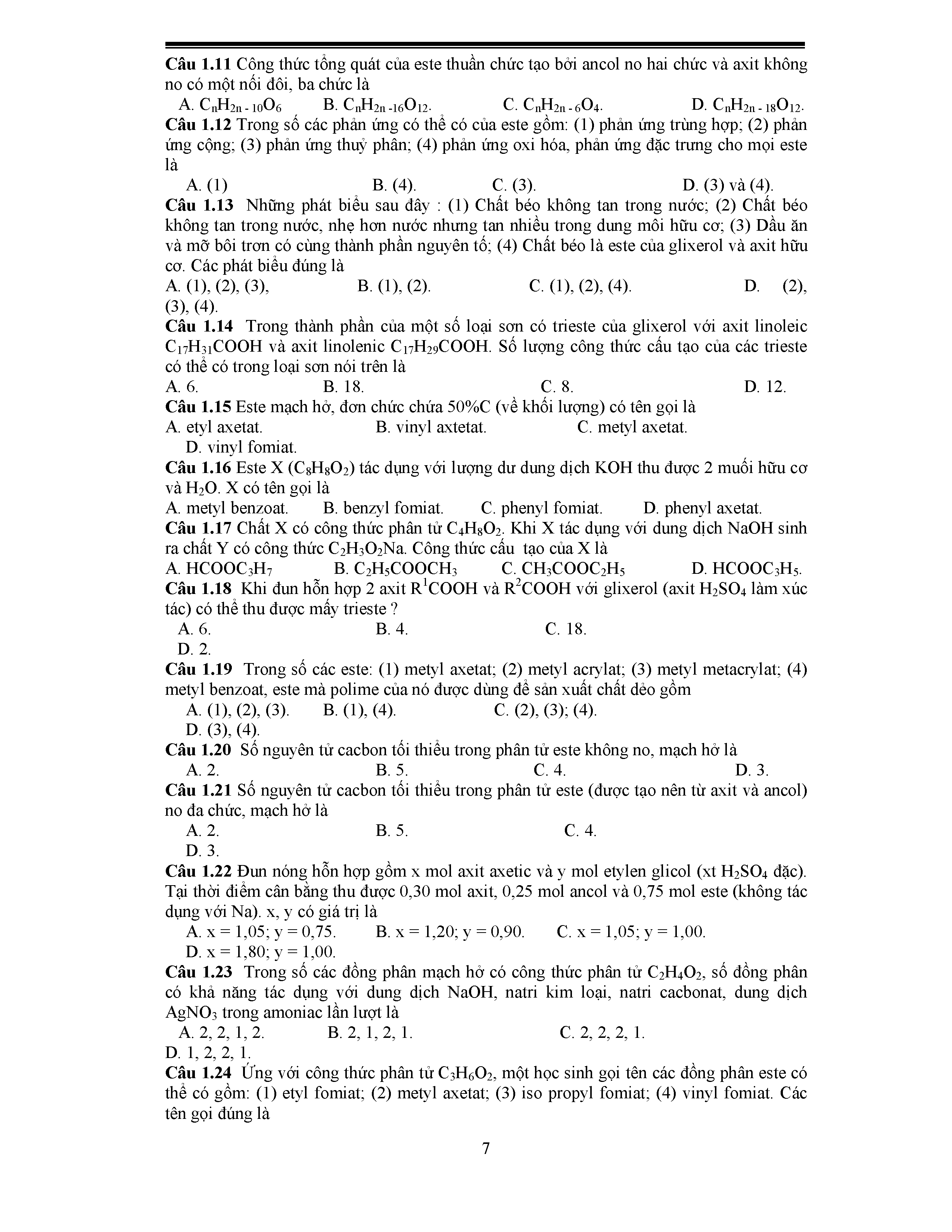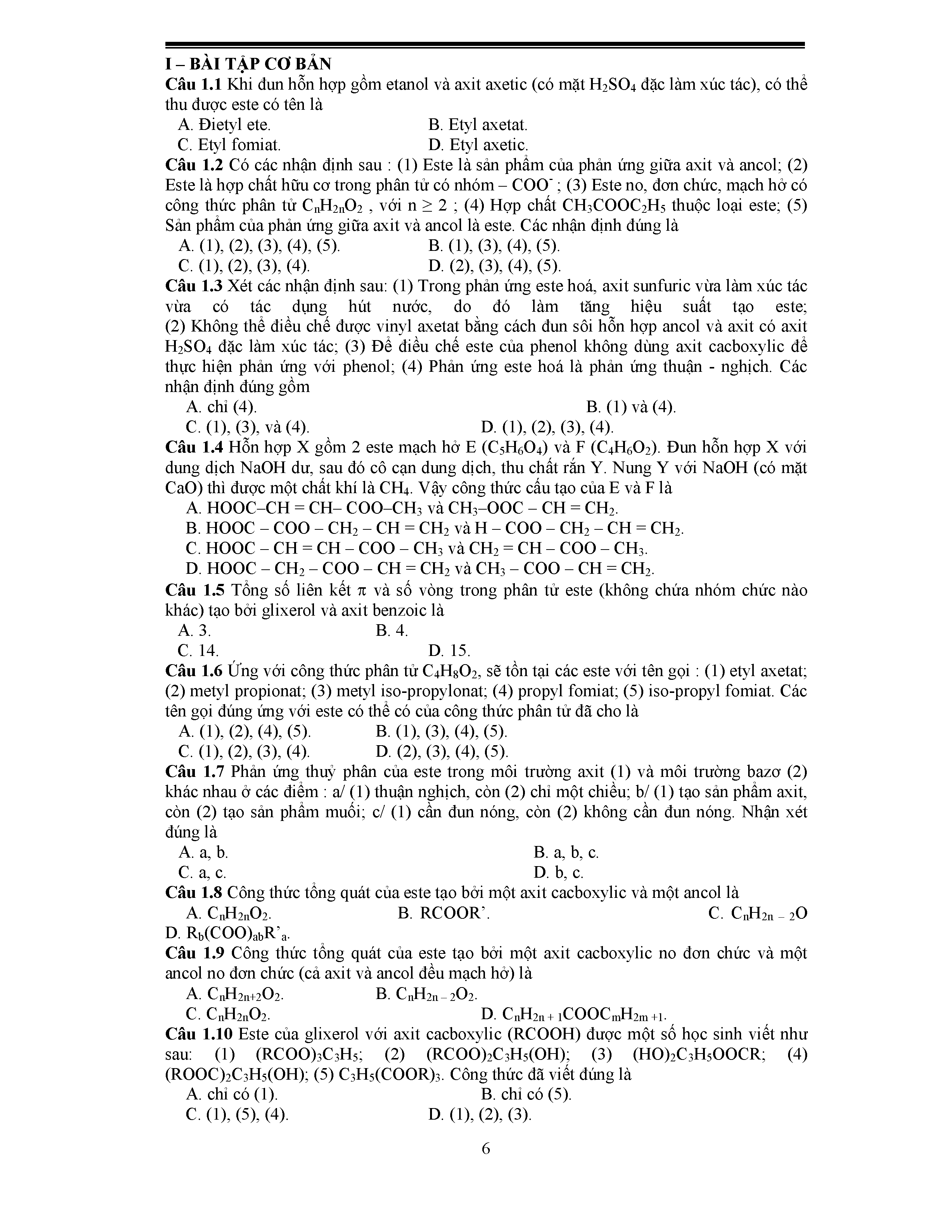 Bài 1: Este