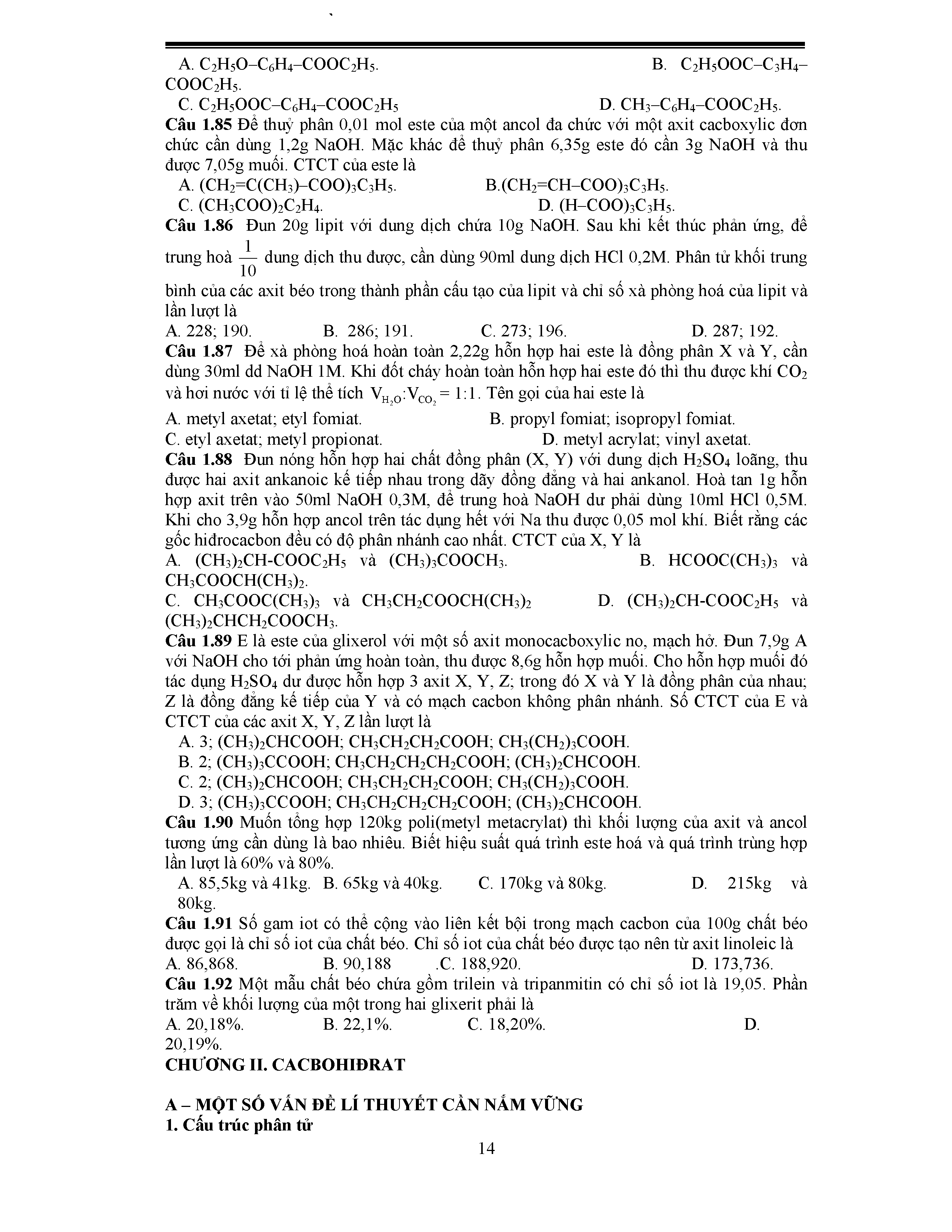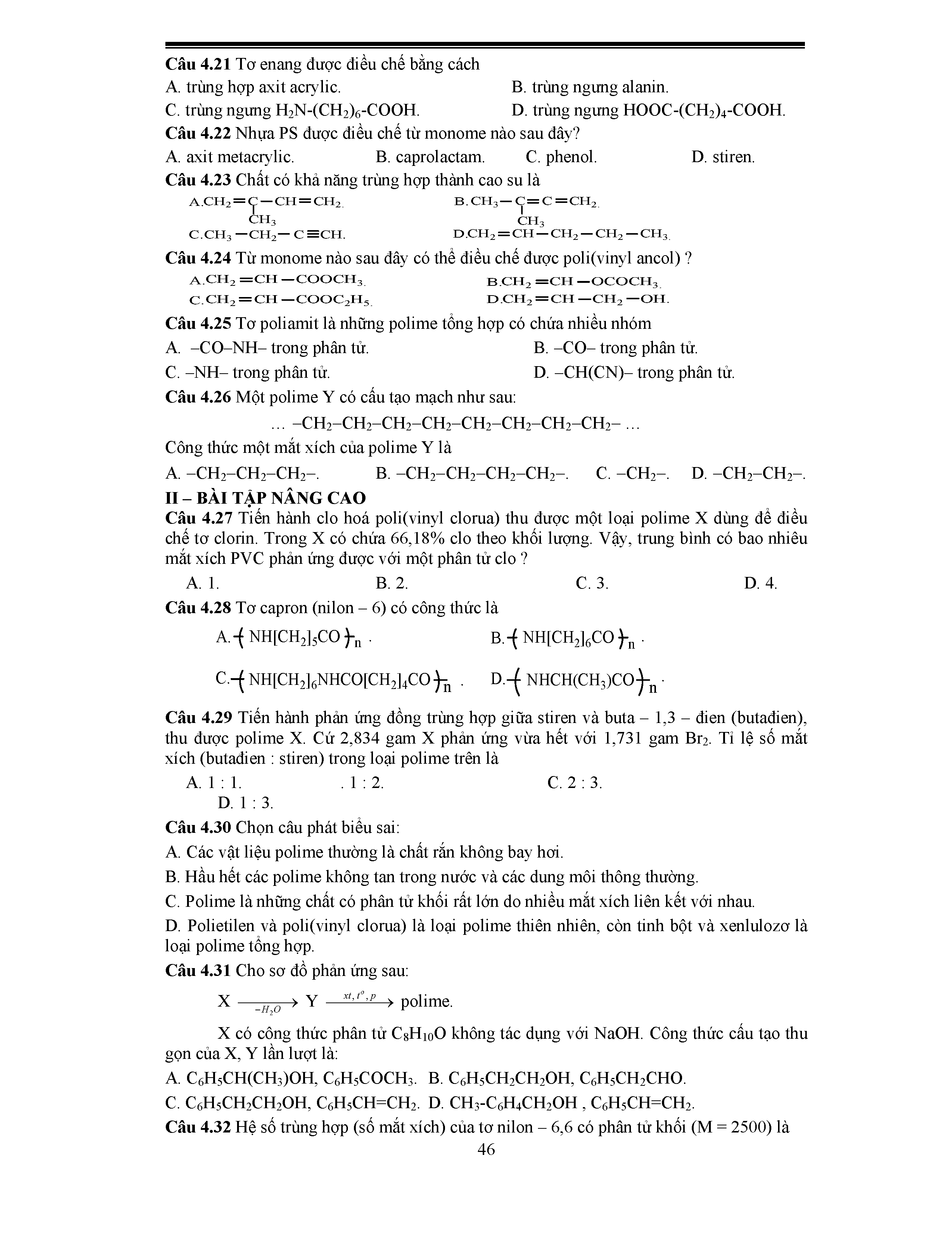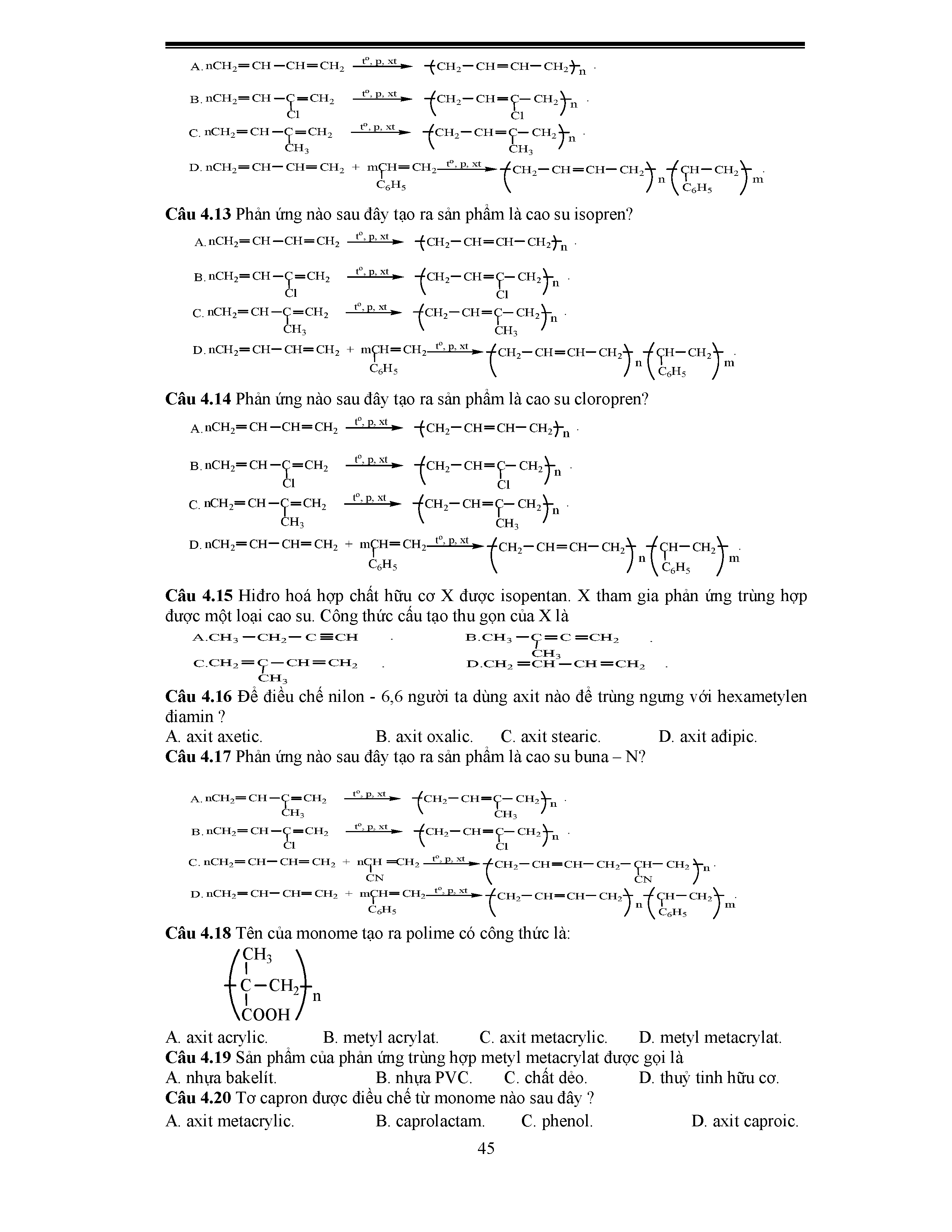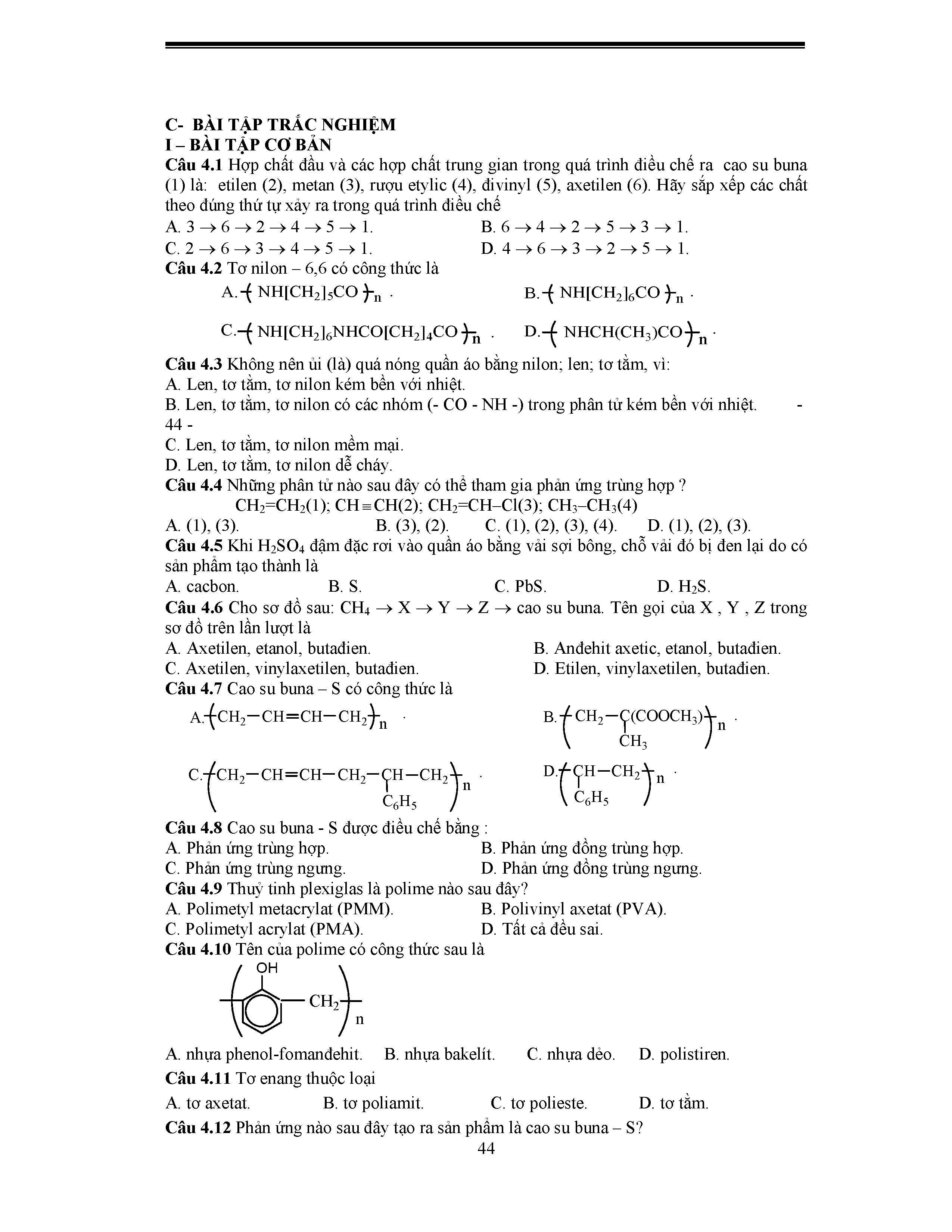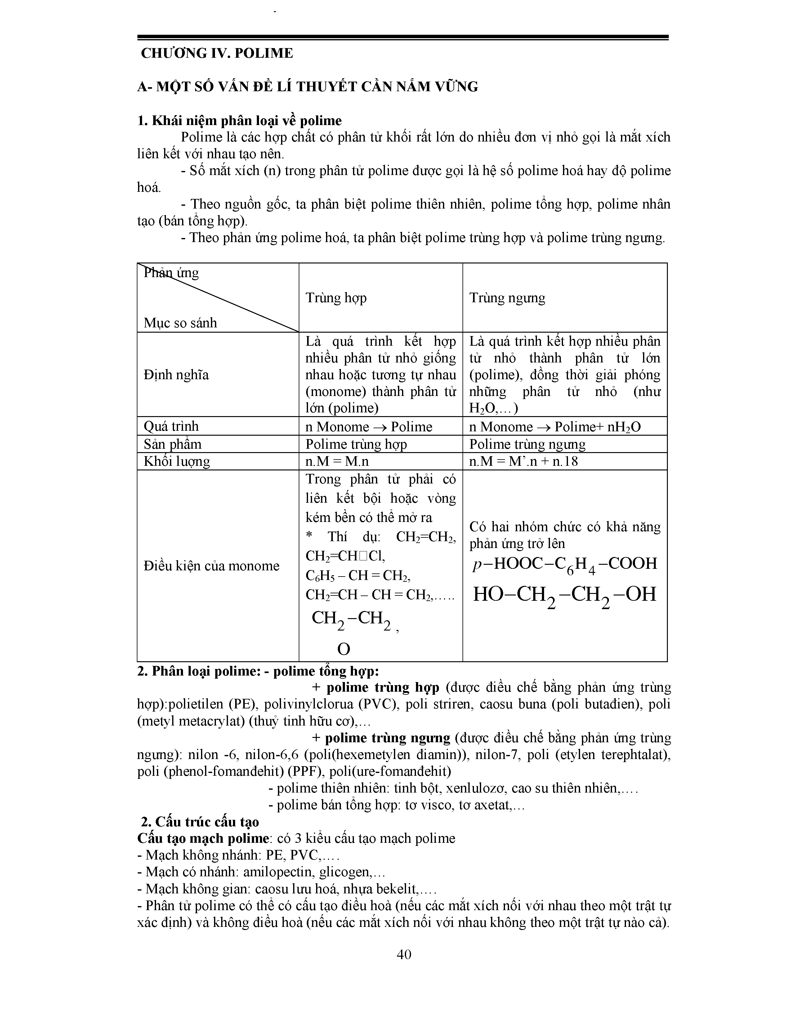 1. Một số vấn đề lý thuyết Polime cần nắm vững