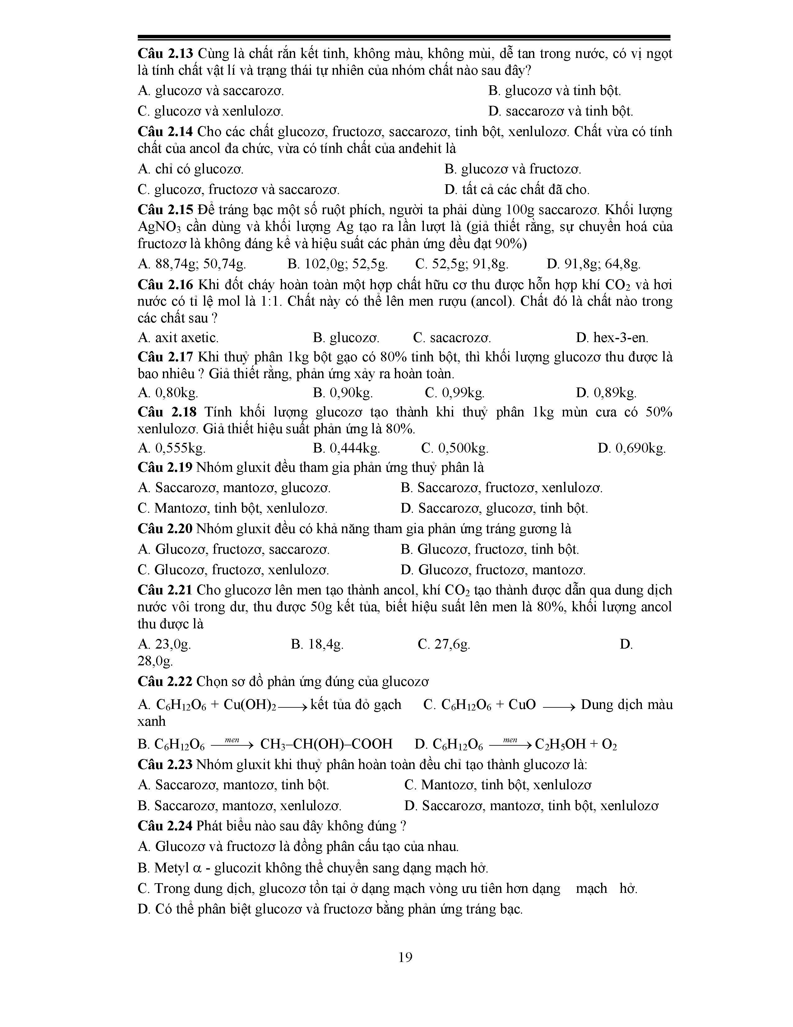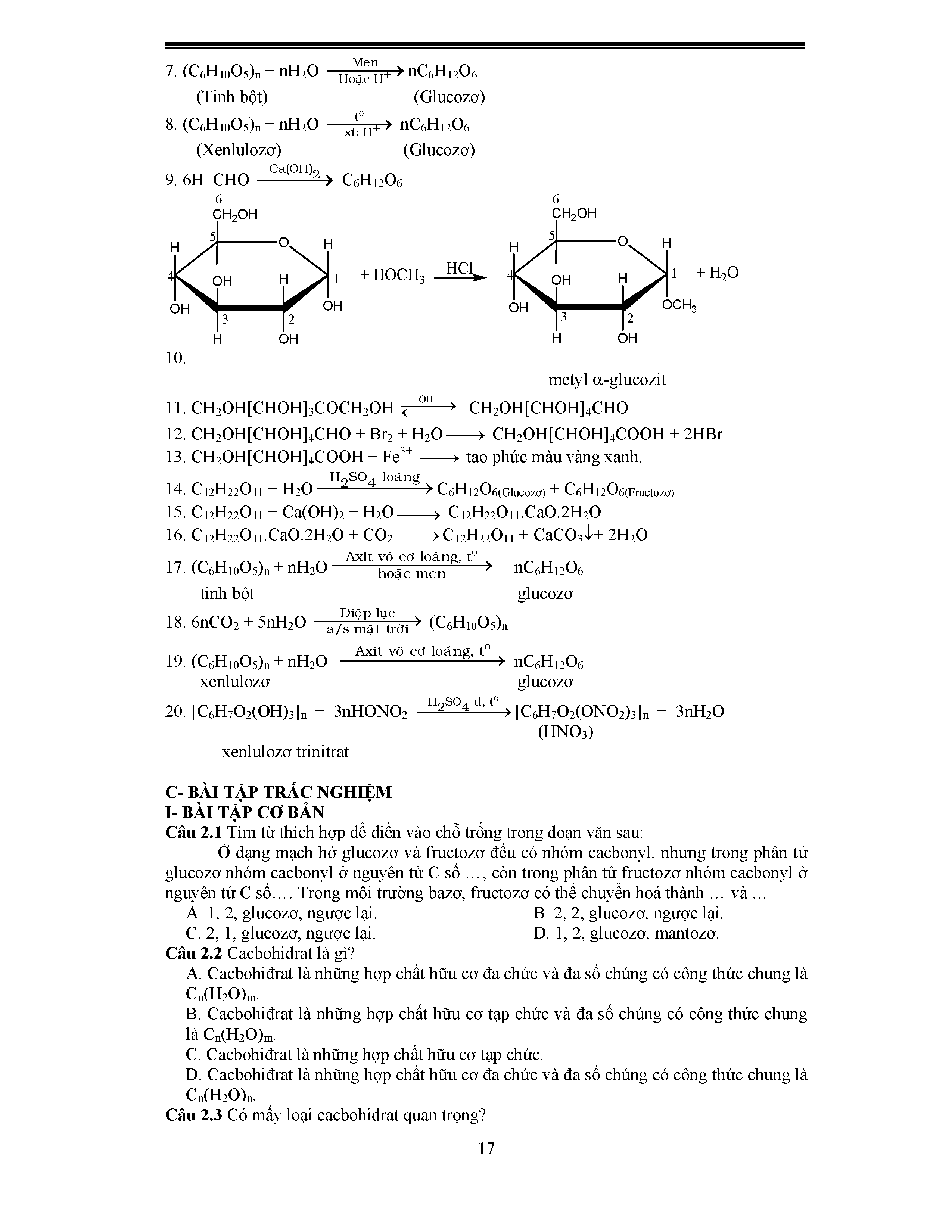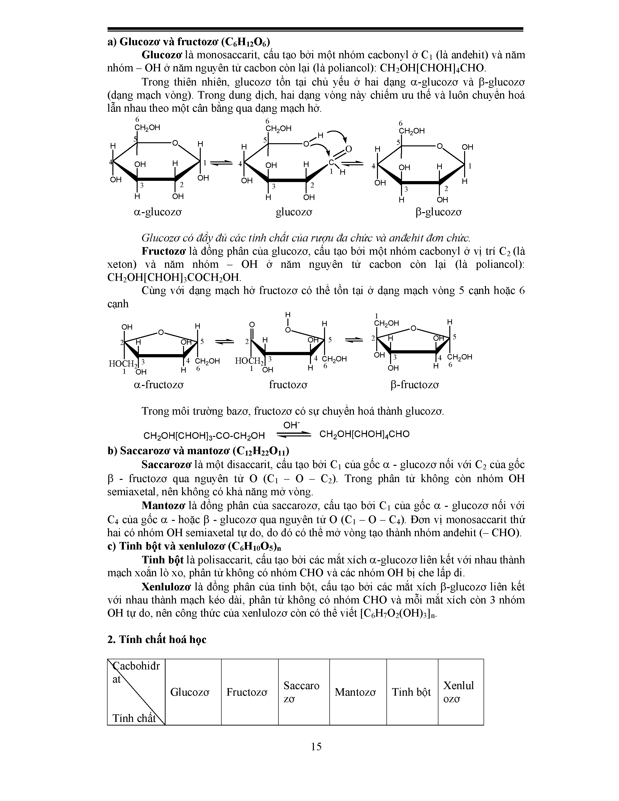 - Cấu trúc phân tử Glucozo và Fructozo; Saccarozo và Mantozo
