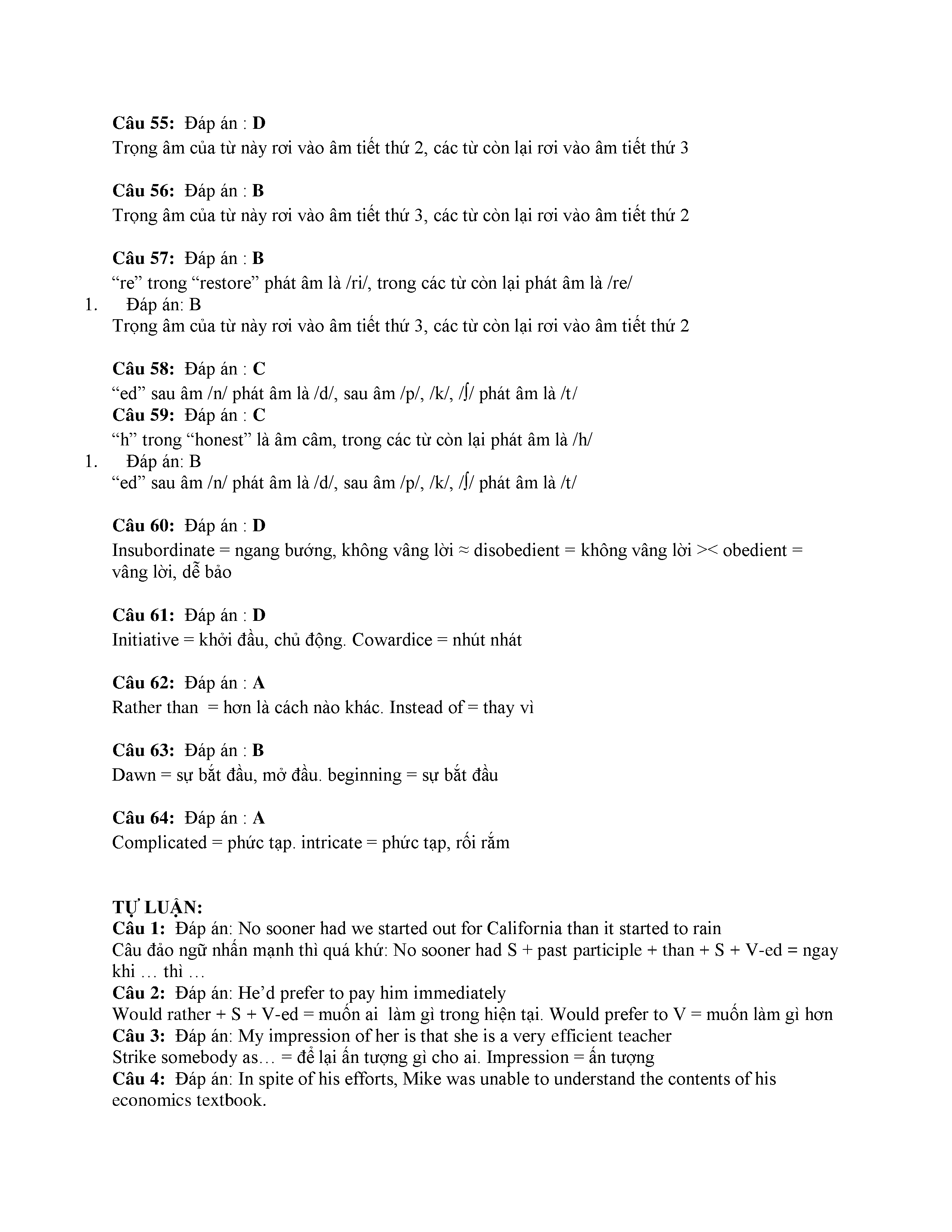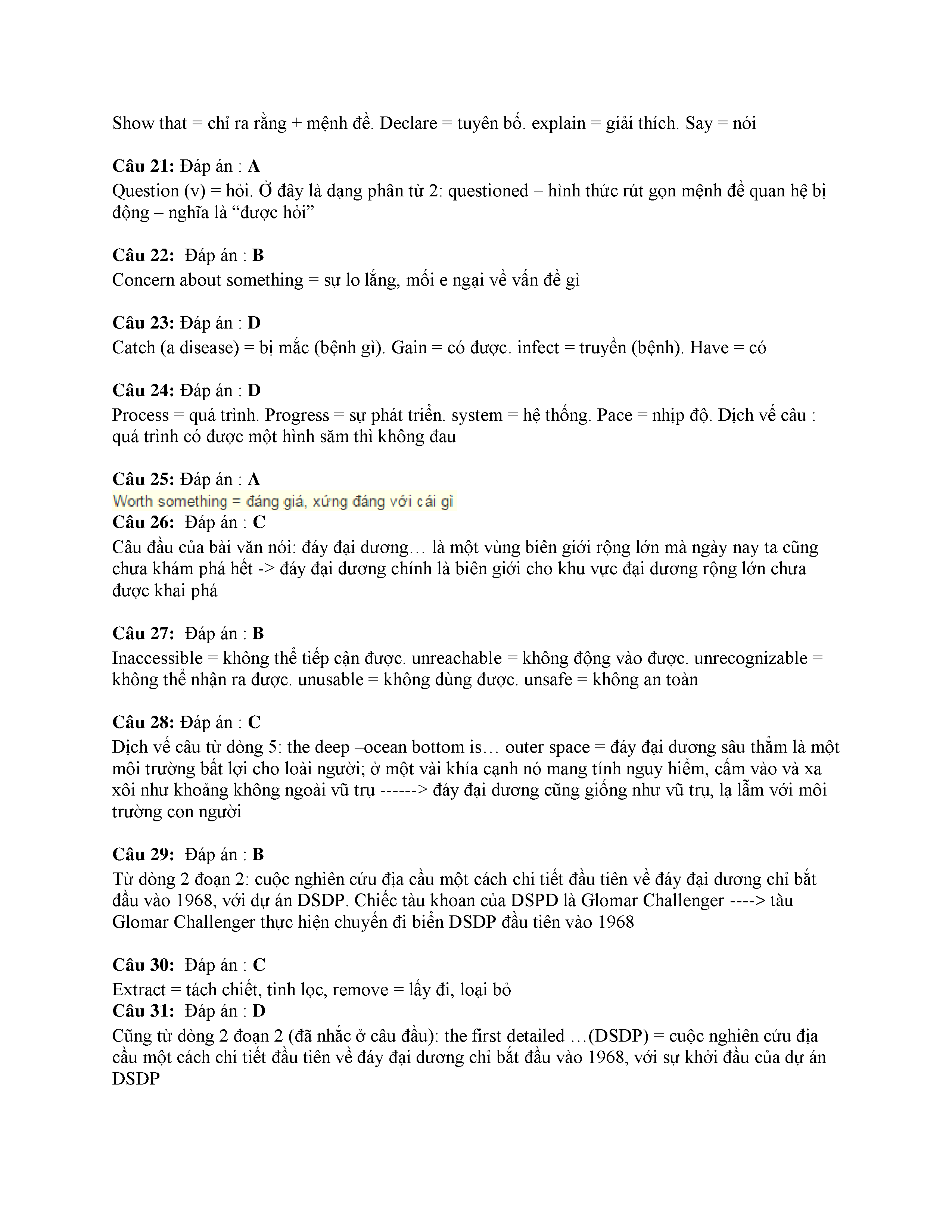 ĐÁP ÁN ĐỀ THI THỬ THPT QG MÔN TIẾNG ANH LẦN 3 THPT CHUYÊN KHTN 2016