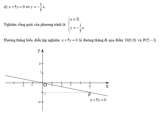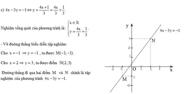 - Phương trình bậc nhất hai ẩn \[ax+by=c\] luôn luôn có vô số nghiệm. Tập nghiệm của nó được biểu diễn bởi đường thẳng \[ax+by=c,\] kí hiệu là (d).