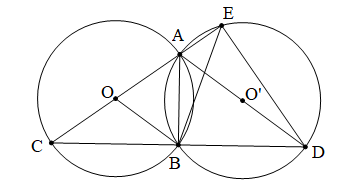 Ta có $$ OA=OB\,\,\Rightarrow \,\,\Delta OAB $$ cân tại O.