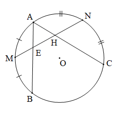 $$ \Rightarrow \,\,\,\widehat{AKR} $$ $$ =\frac{1}{2}.\frac{1}{2} $$ (sđ $$ \overset\frown{AB}\,+ $$ sđ $$ \overset\frown{AC}+ $$ sđ $$ \overset\frown{BC} $$ ) $$ =\frac{1}{4}{{.360}^{o}}={{90}^{o}} $$