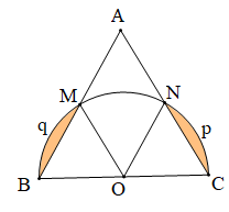 $$ S=\frac{1}{2}\pi .{{\left( \frac{HI}{2} \right)}^{2}}+\frac{1}{2}\pi {{\left( \frac{OB}{2} \right)}^{2}}-\frac{1}{2}\pi {{\left( \frac{OH}{2} \right)}^{2}}-\frac{1}{2}\pi {{\left( \frac{BI}{2} \right)}^{2}} $$