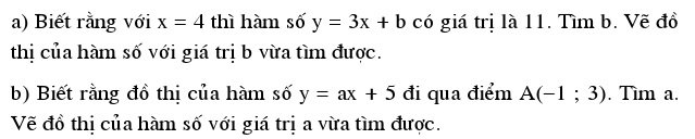 - Bước 2: Vẽ đường thẳng đi qua hai điểm $$A $$ và $$B$$ ta được đồ thị của hàm số $$ y=ax+b $$ .