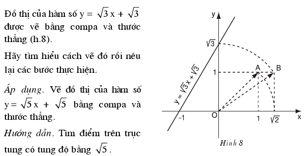 - Chú ý: Đồ thị của hàm số $$ y=ax+b\,\,(\,a\ne 0) $$ còn được gọi là đường thẳng $$ y=ax+b $$ ; b được gọi là tung độ gốc của đường thẳng.