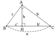 $$ {{a}^{2}}={{b}^{2}}+{{c}^{2}} $$ (định lý Py-ta-go)