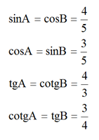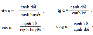 - Nếu $$ \alpha +\beta ={{90}^{o}} $$ thì $$ \sin \alpha =\cos \beta \,,\,\,\cos \alpha =\sin \beta ,\,\,tg\alpha =\cot g\beta \,,\,\,\cot g\alpha =tg\beta . $$