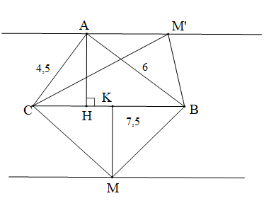 Để $$ {{S}_{ABC}}={{S}_{MBC}} $$ thì $$ AH=MK=3,6cm $$ .