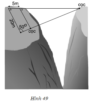 Tìm khoảng cách giữa hai cọc để căng dây vượt qua vực trong hình 49 (làm tròn đến mét).