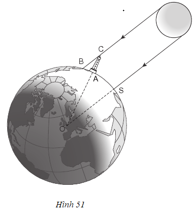 (Trên hình 51 điểm S tượng trưng cho thành phố Xy-en, điểm A tượng trưng cho thành phố A-lếch-xăng-đri-a, bóng của tháp trên mặt đất được coi là đoạn thẳng AB).